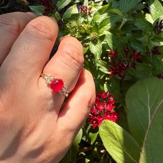 Red Spinel Cabochon & Rosecut Diamond Ring ③