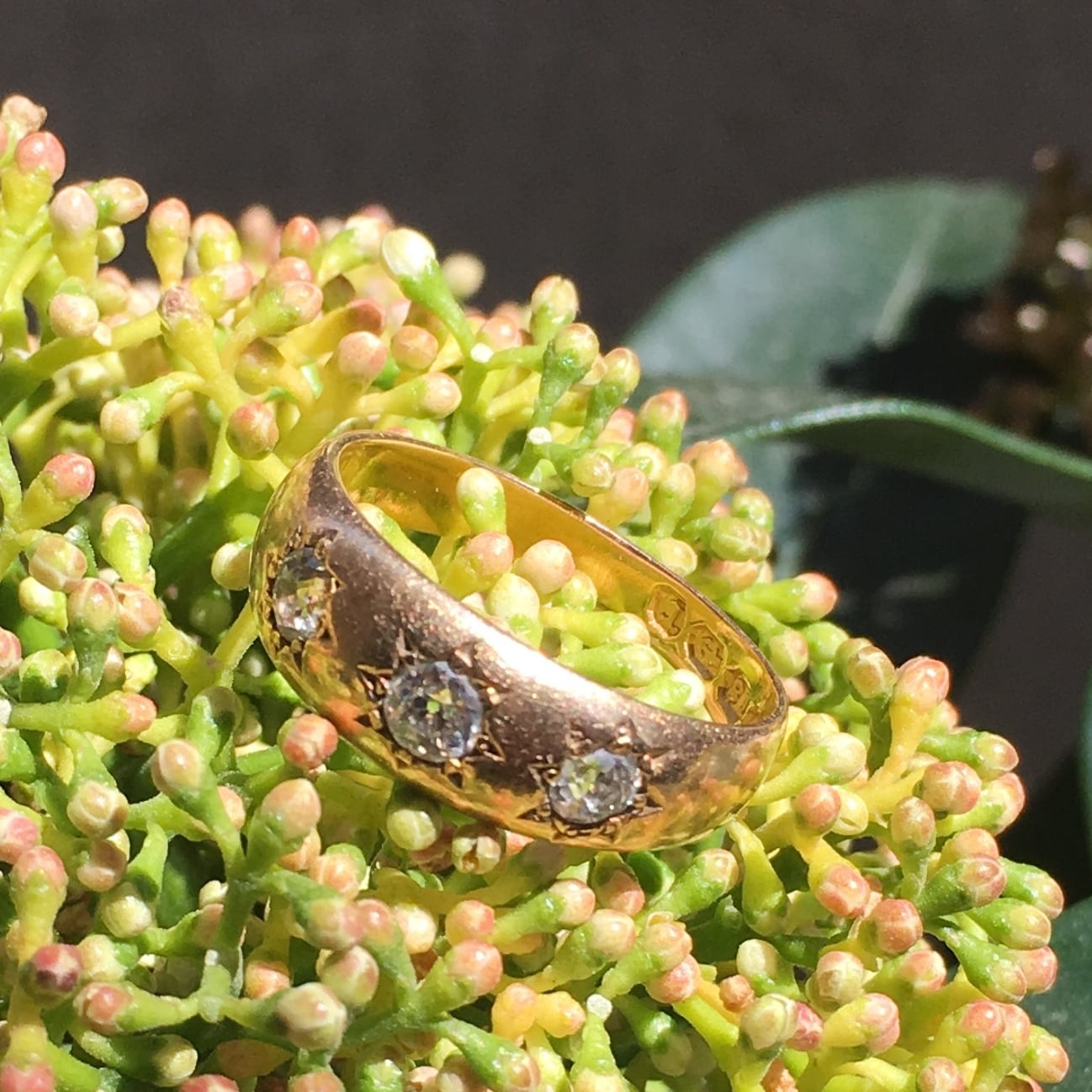 ヴィクトリア時代に大流行したダイヤモンドのジプシーリングです。
