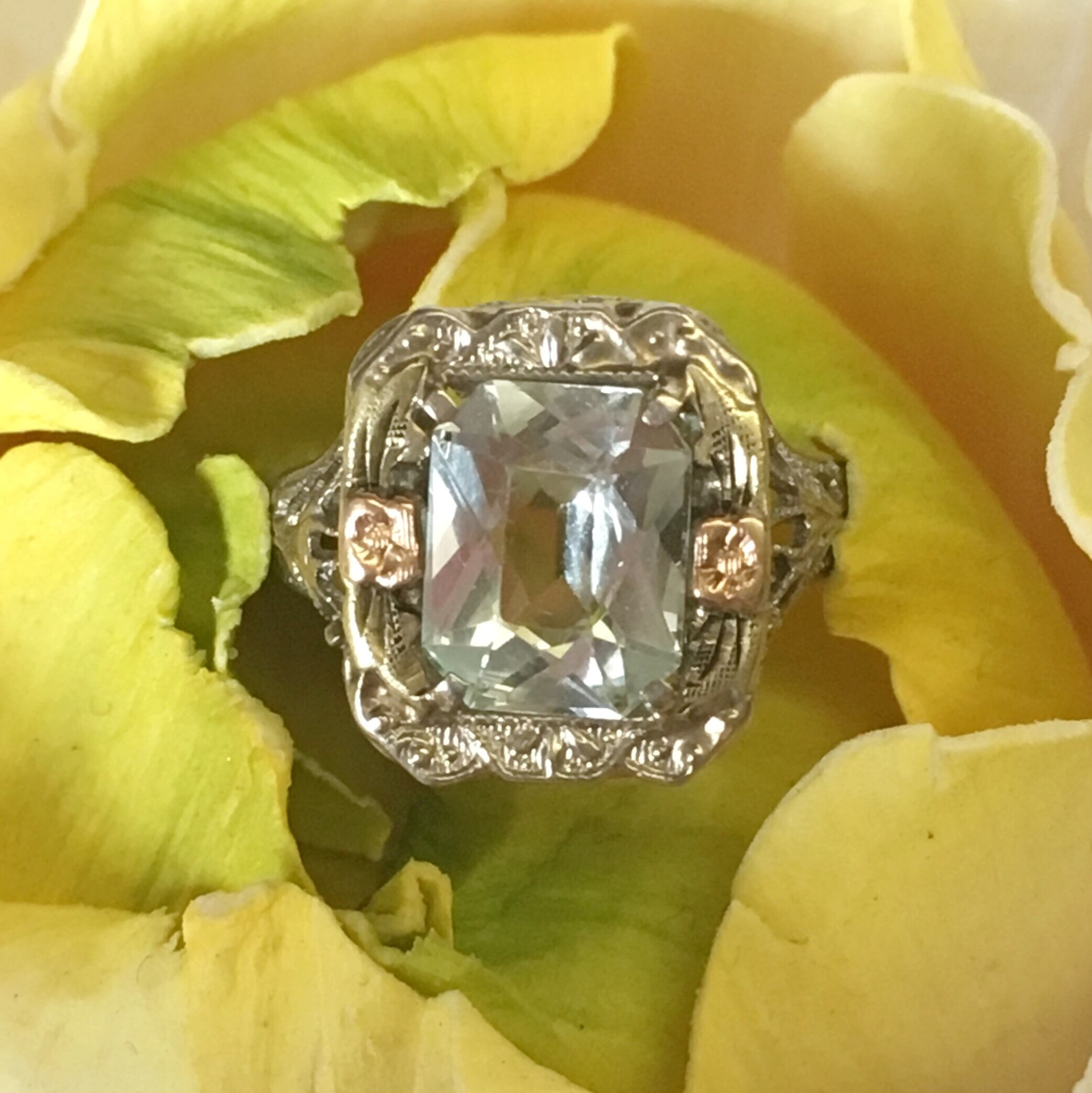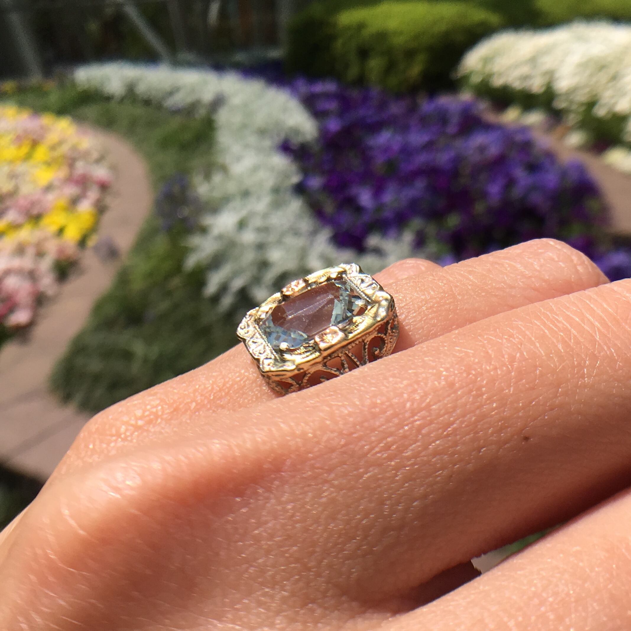 まるでそんな絵画のようなアクアマリンのリングはアール・ヌーヴォーからアール・デコの移行期に製作されたと思われます。