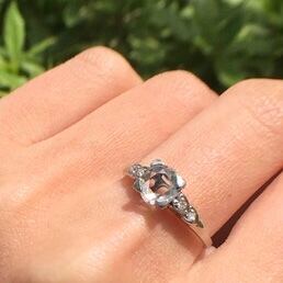 ローズカットとオールドヨーロピアンカットの中間の様な不思議なカットのダイヤモンドは直径6.3ミリととても大粒ですが、リング全体はスリムな為にダイヤモンドが主役として更に立派に煌めき、美しさを増しています。