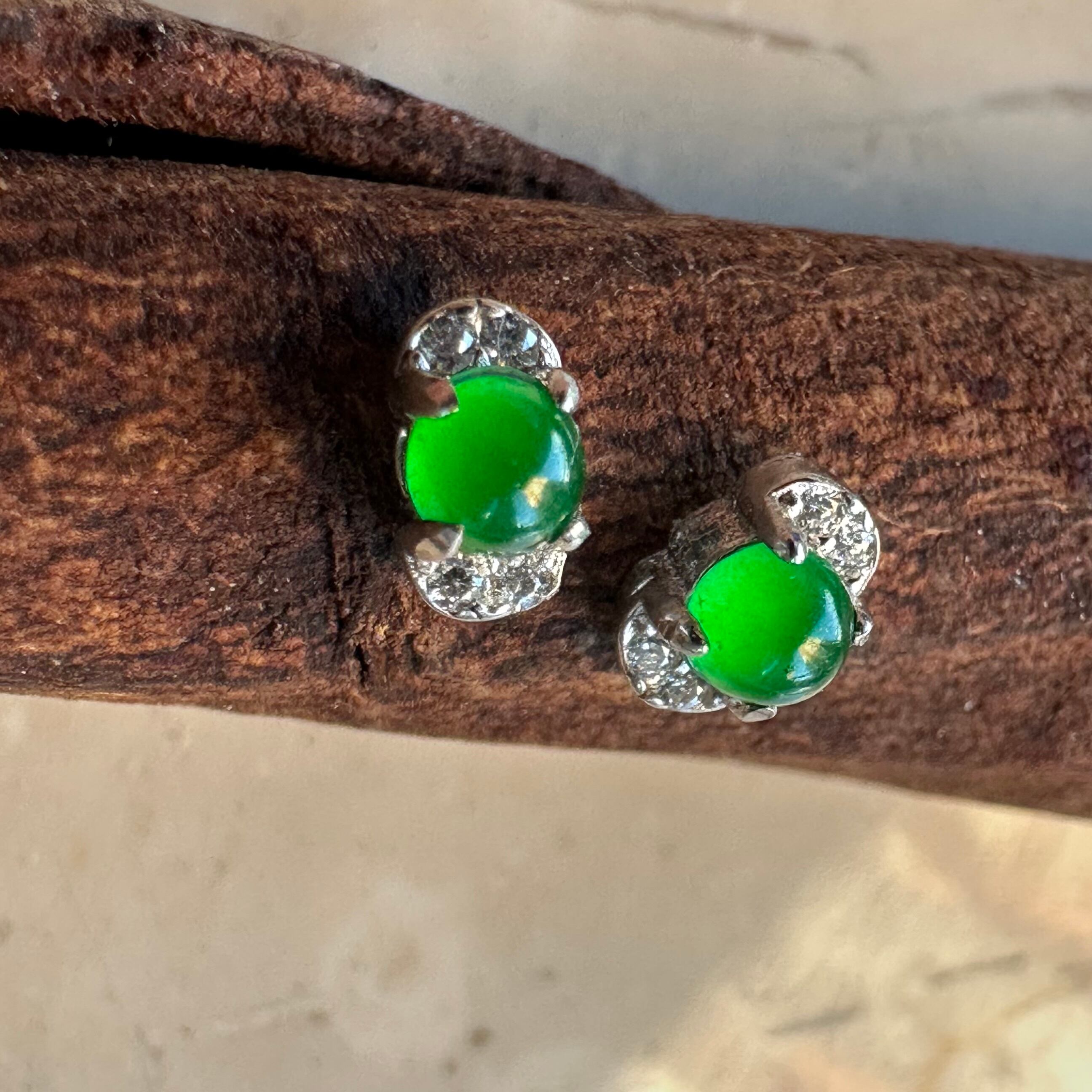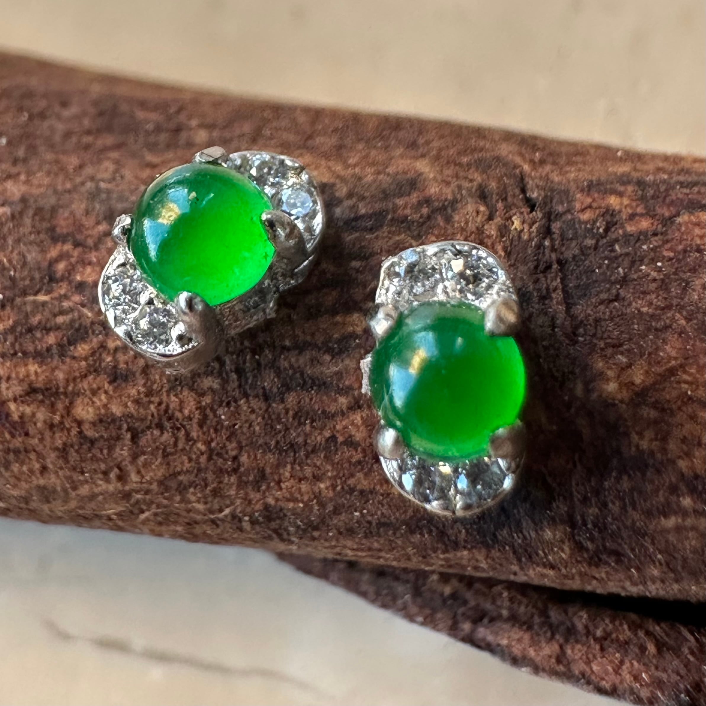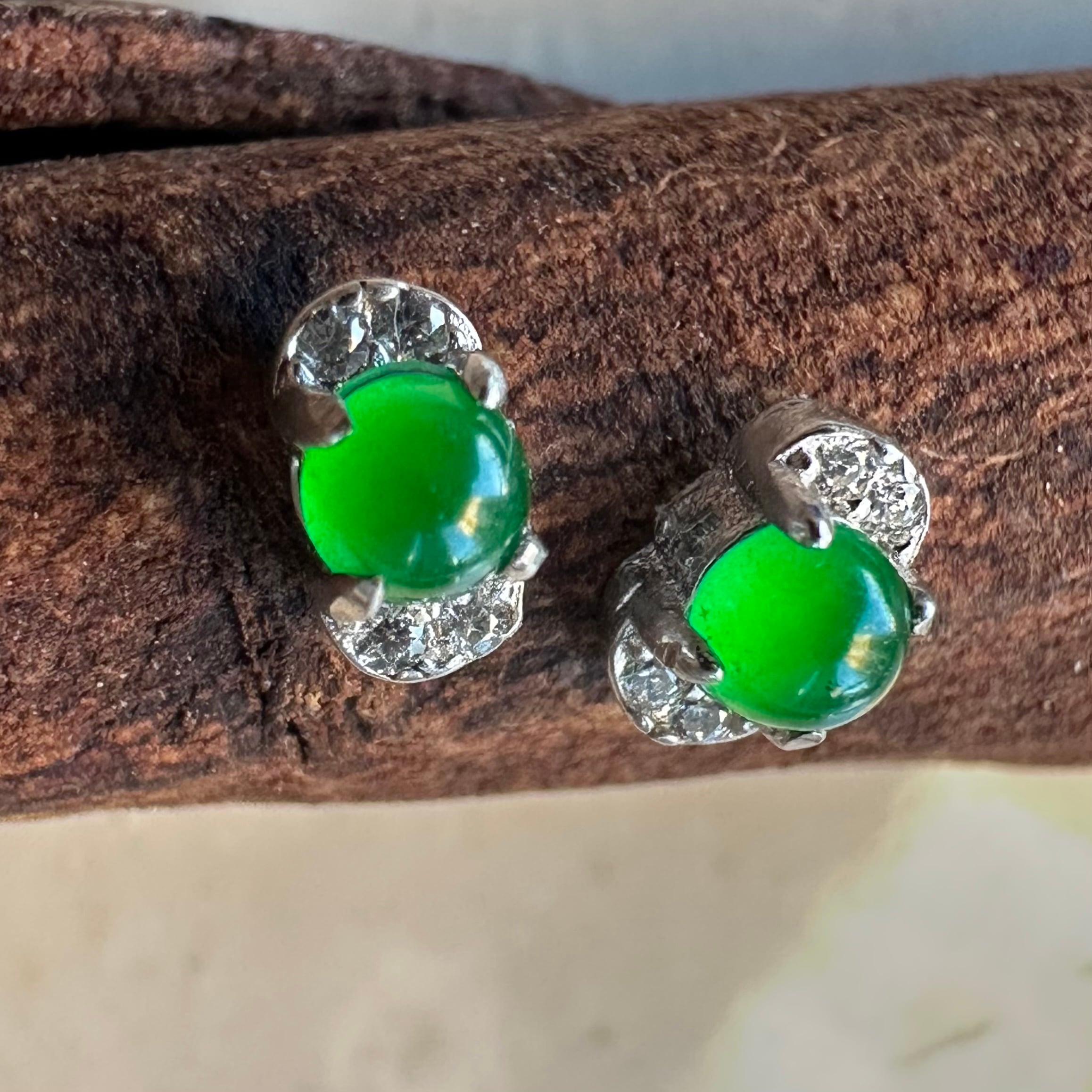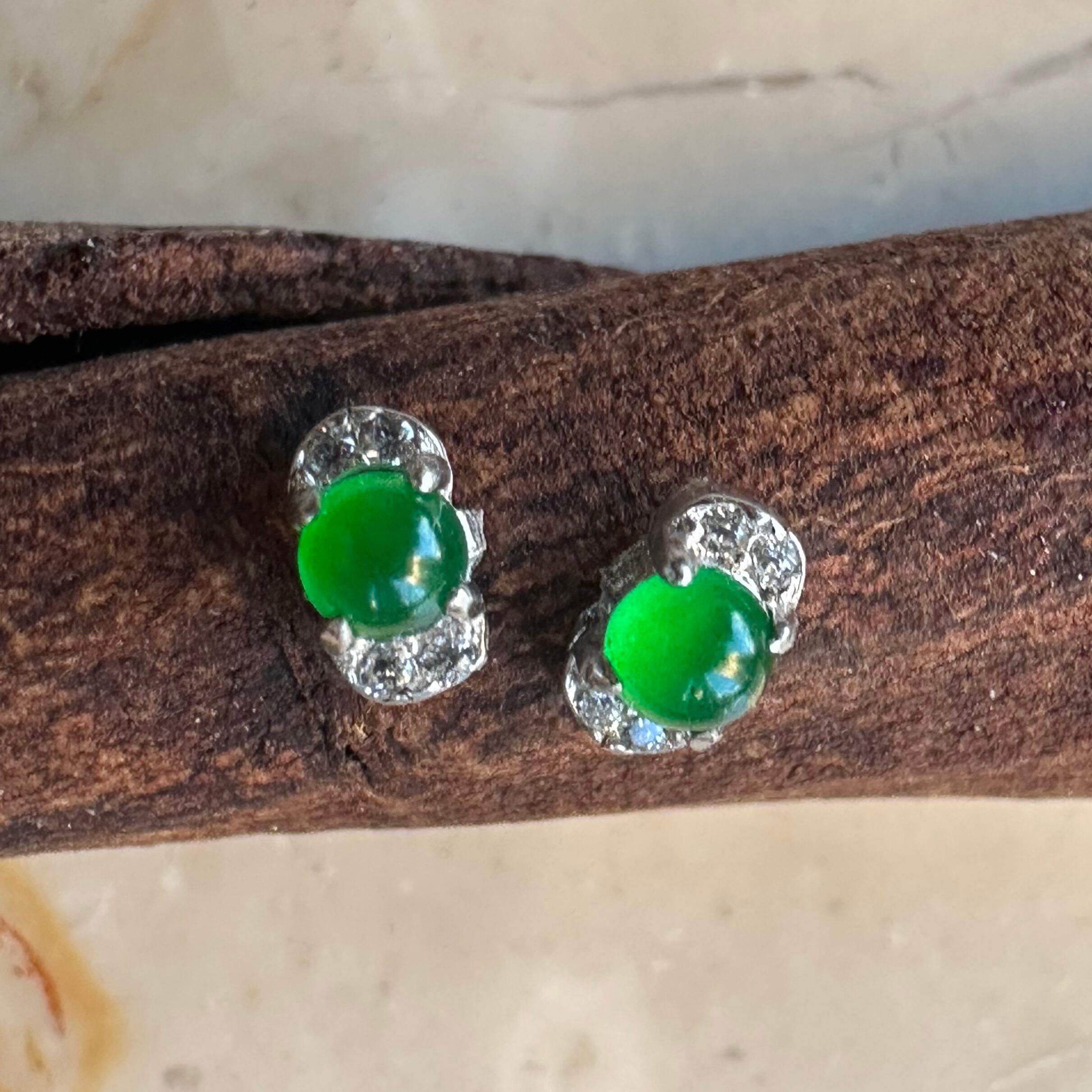 写真では大きく見せていますが翡翠の直径は3mmです。小さいながらも華やかで明るい緑が綺麗です。
