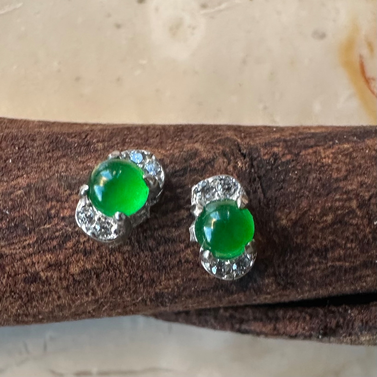 3mmの翡翠2ピースをシルバーとキュービックジルコンでピアスにお仕立てしたお品です。