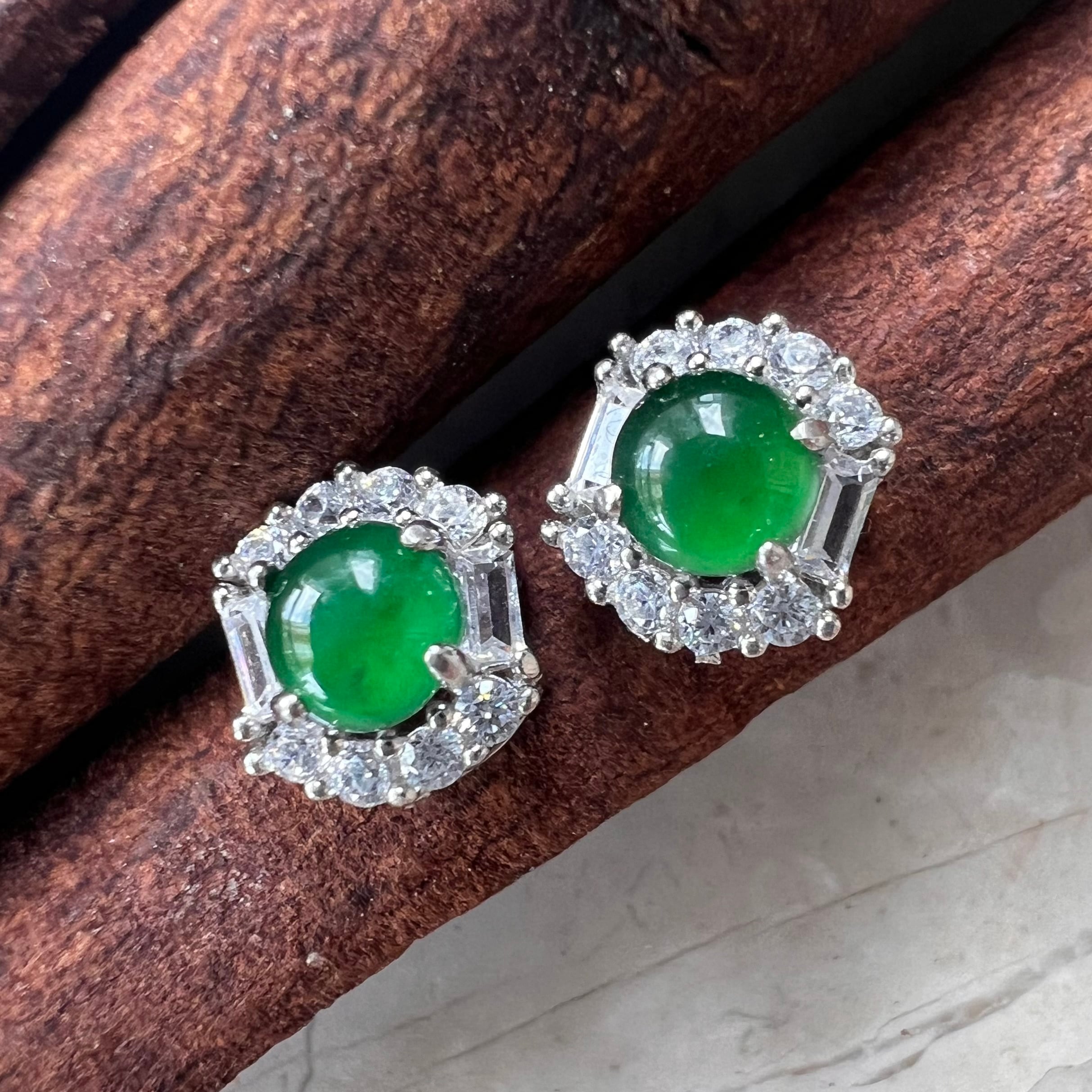 4.2mmの天然翡翠2ピースを使ったシルバーのピアスです。
