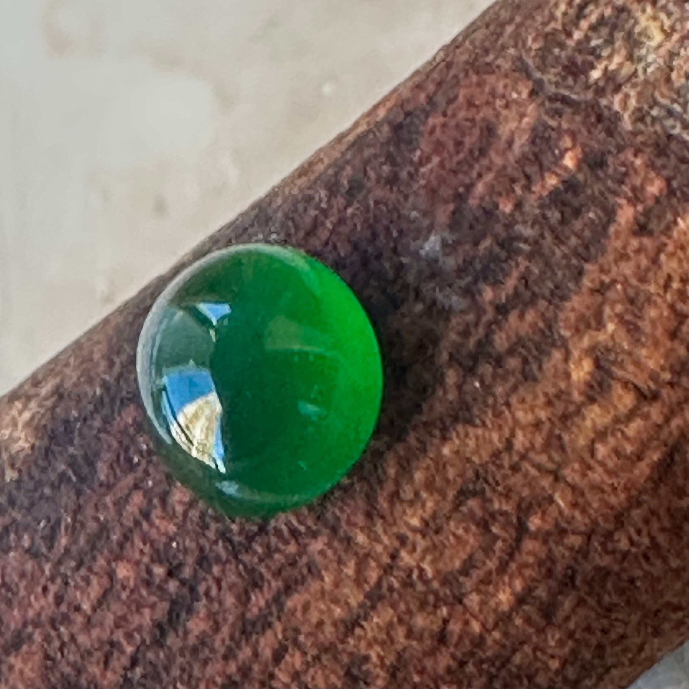 先月仕事で香港を訪れる機会があり、信じられない量のジュエリーを浴びる様に見る機会がありました。そんな中で訪れたジュエリー会社で出会った小粒の翡翠を使ったリングに惹かれ、サンプルとして購入。ダメもとでルースの購入を打診したところ、すでにジュエリー制作用として検査済みのカボションの石を横取りする様に購入して来ました。