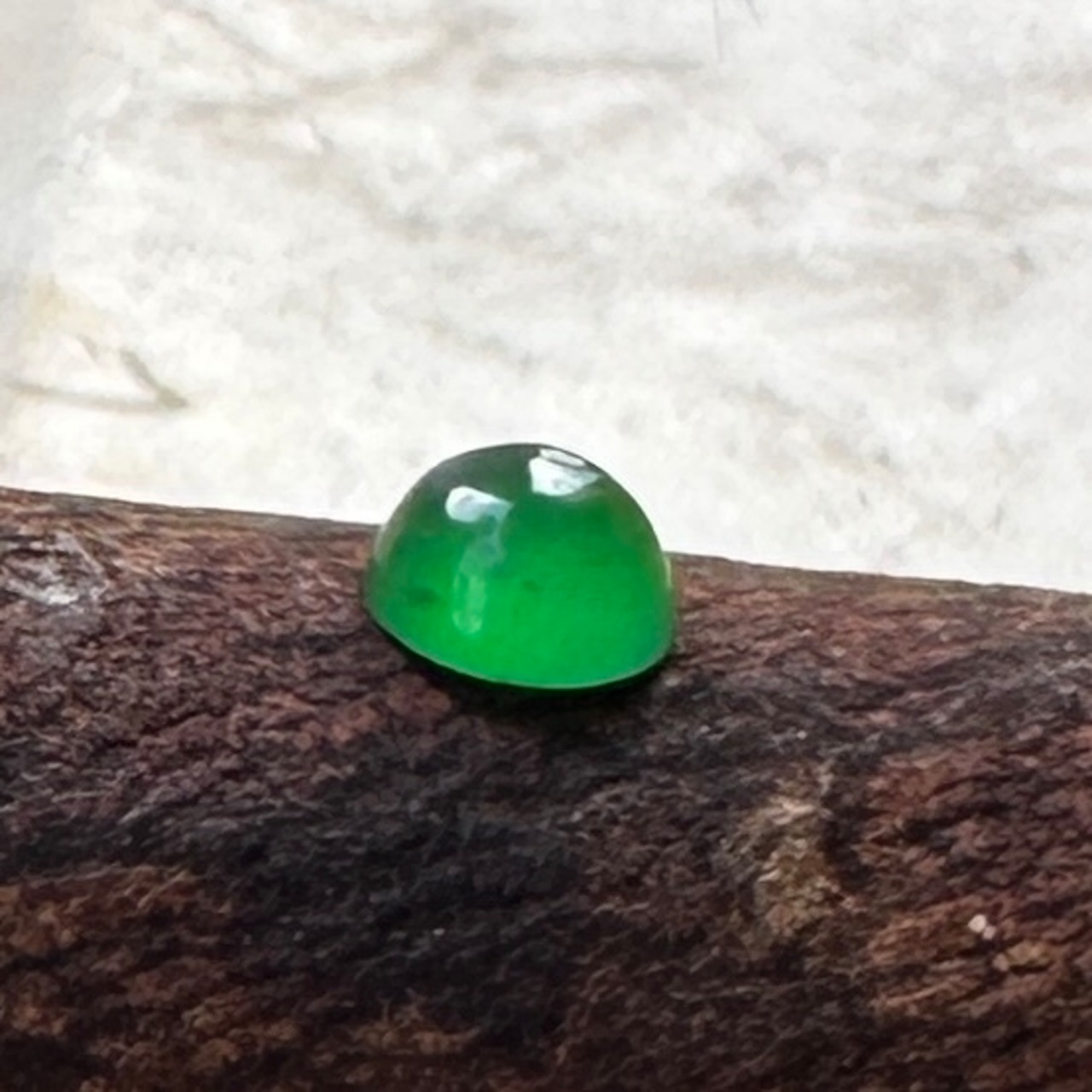 先月仕事で香港を訪れる機会があり、信じられない量のジュエリーを浴びる様に見る機会がありました。そんな中で訪れたジュエリー会社で出会った小粒の翡翠を使ったリングに惹かれ、サンプルとして購入。ダメもとでルースの購入を打診したところ、すでにジュエリー制作用として検査済みのカボションの石を横取りする様に購入して来ました。