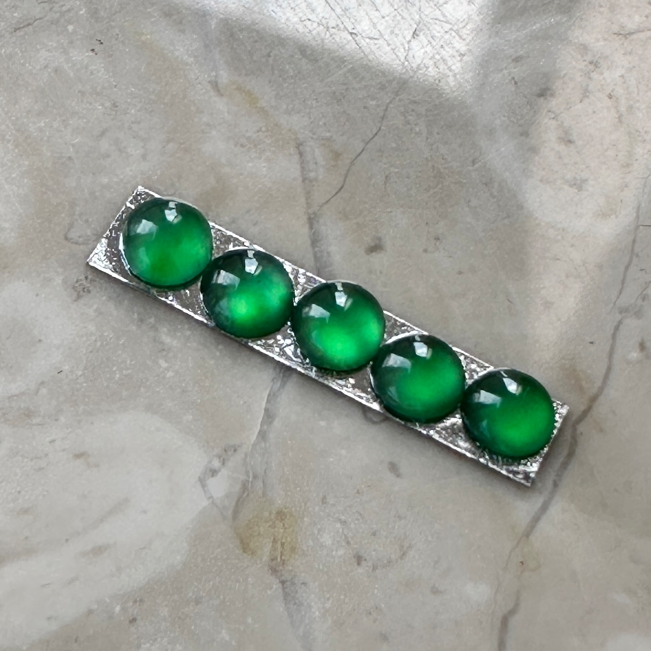 先月仕事で香港を訪れる機会があり、信じられない量のジュエリーを浴びる様に見る機会がありました。そんな中で訪れたジュエリー会社で出会った小粒の翡翠を使ったリングに惹かれ、サンプルとして購入。ダメもとでルースの購入を打診したところ、すでにジュエリー制作用としてアソート済みの石を譲って頂きました。カボションの小粒の石は通常形が不定形でジュエリー用にアソートして並べるだけでも信じられないくらいの時間がかかります。折角ジュエリーにする様に並べてあった石を横取りする様に購入して来ました。