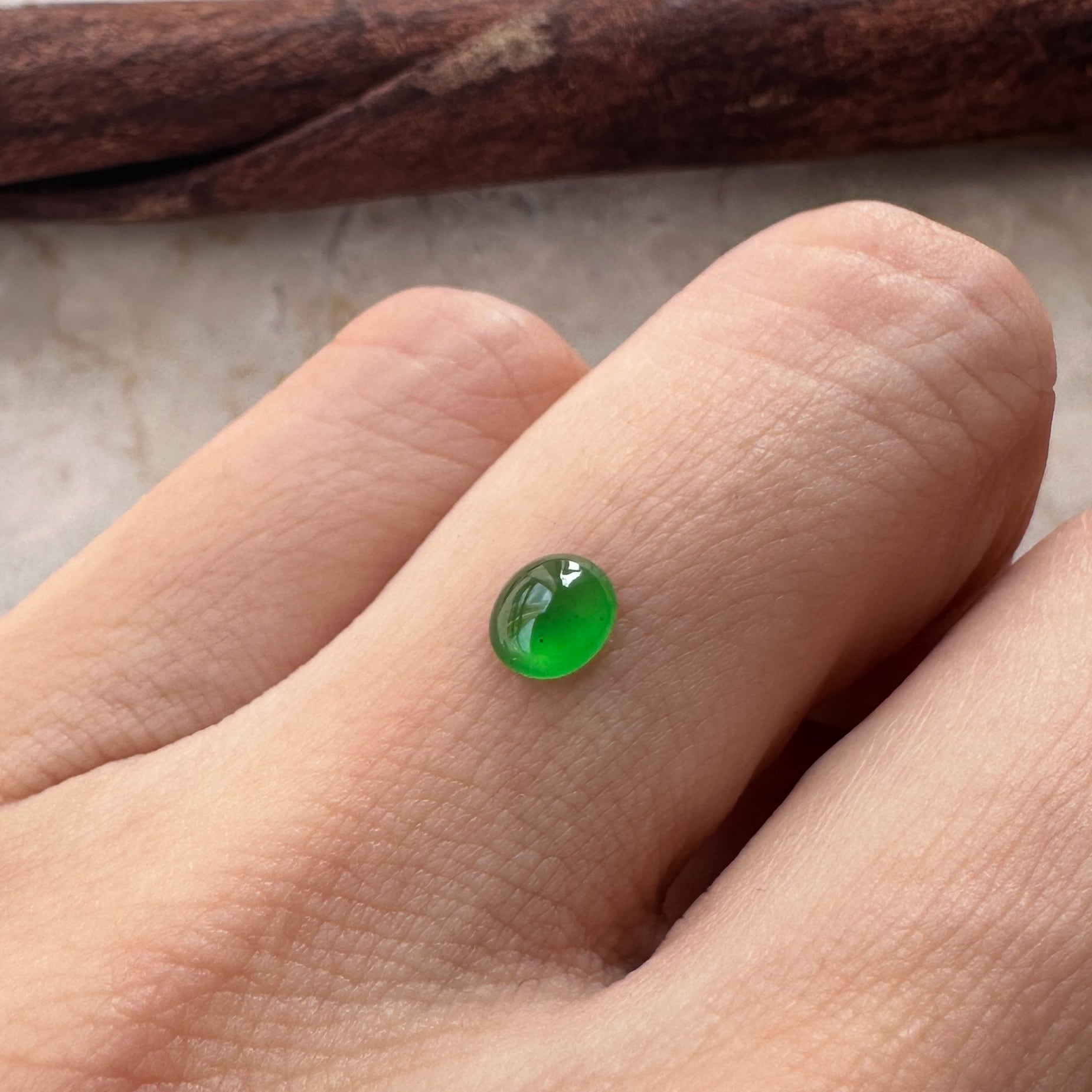 個人的に同じ大きさの石ではお勧めの美しい小粒のオーバルの翡翠です。