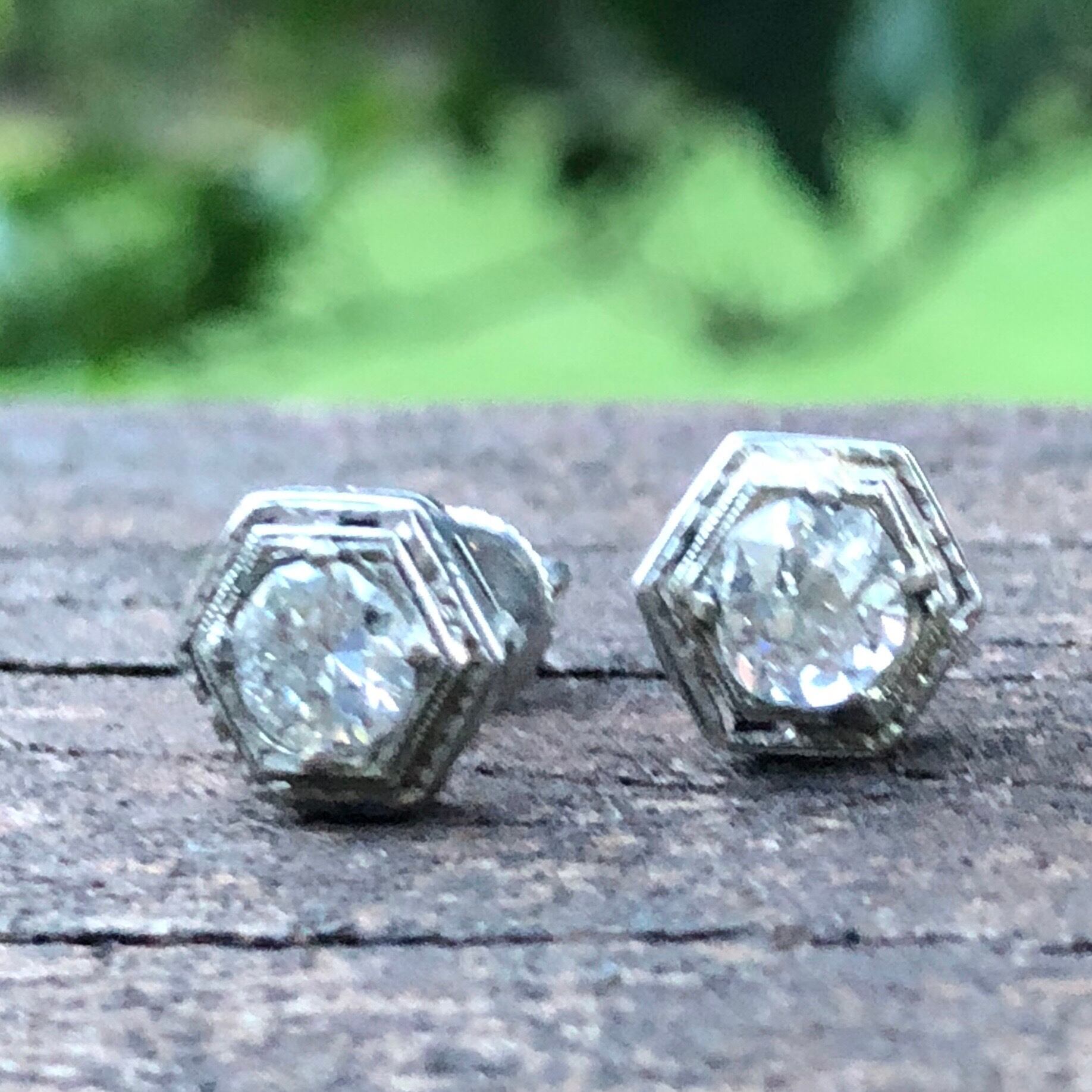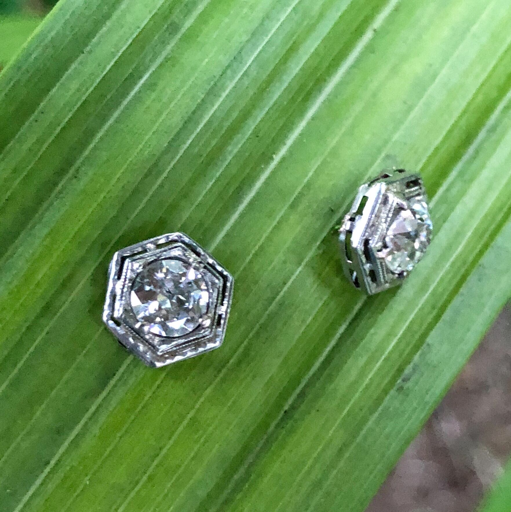 探していてもなかなか出て来ない大粒アンティークのオールドカットダイヤモンドピアスです。