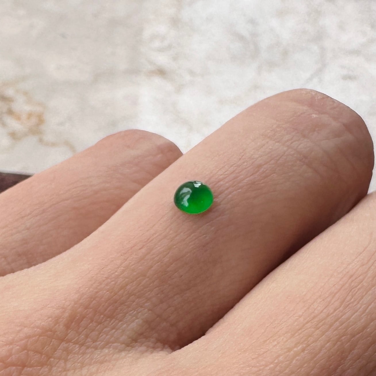 直径 約 3.95mm×3.85mm の天然翡翠 1ピースの販売です。