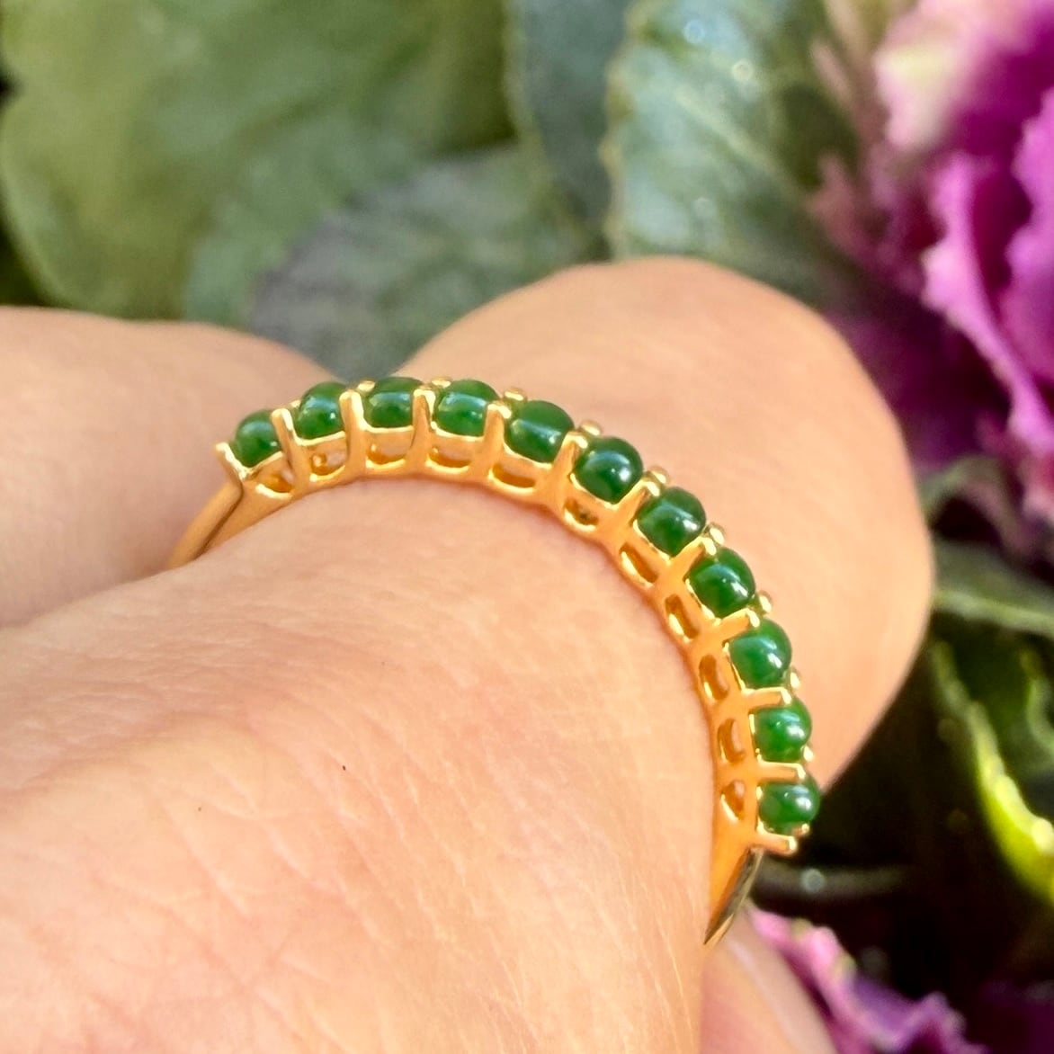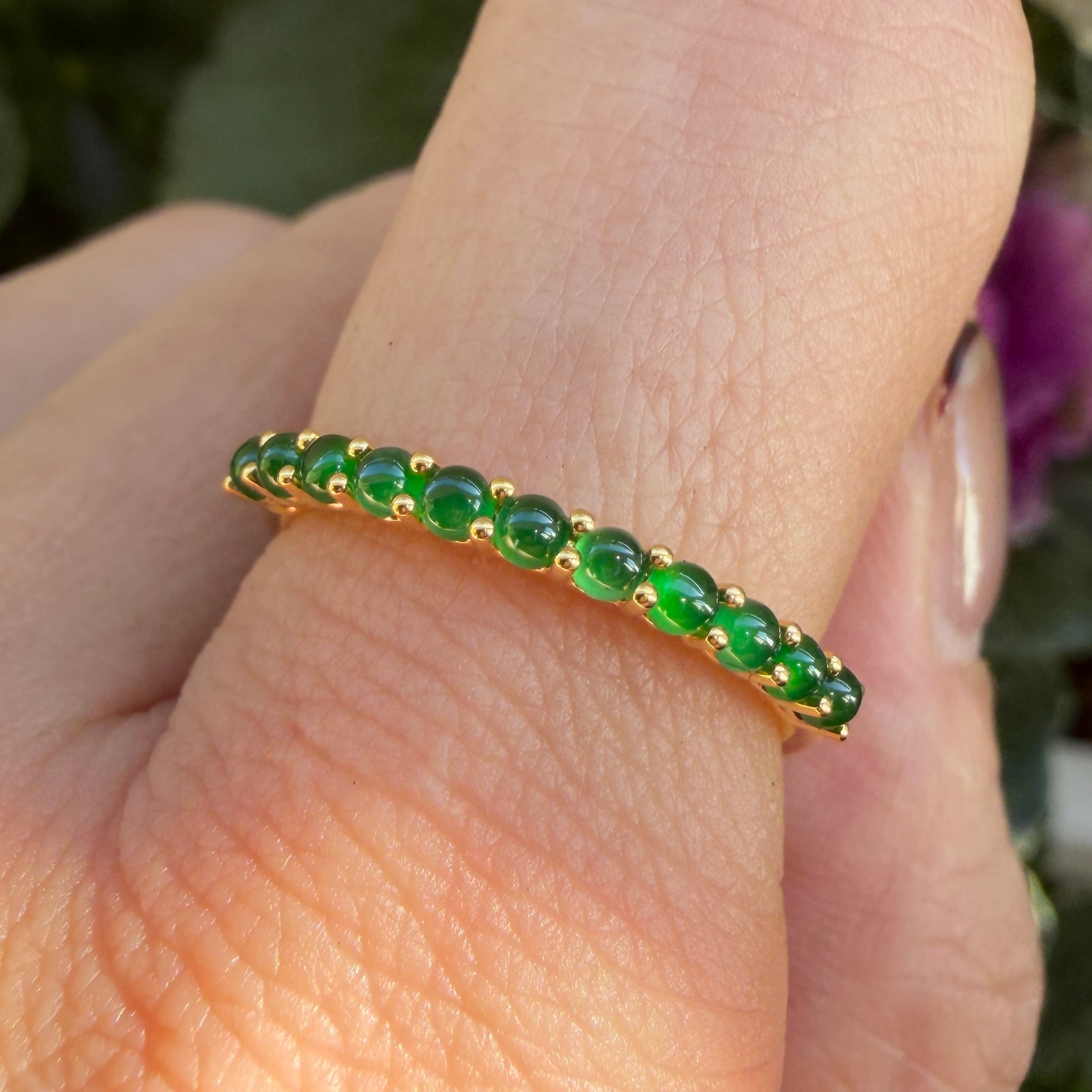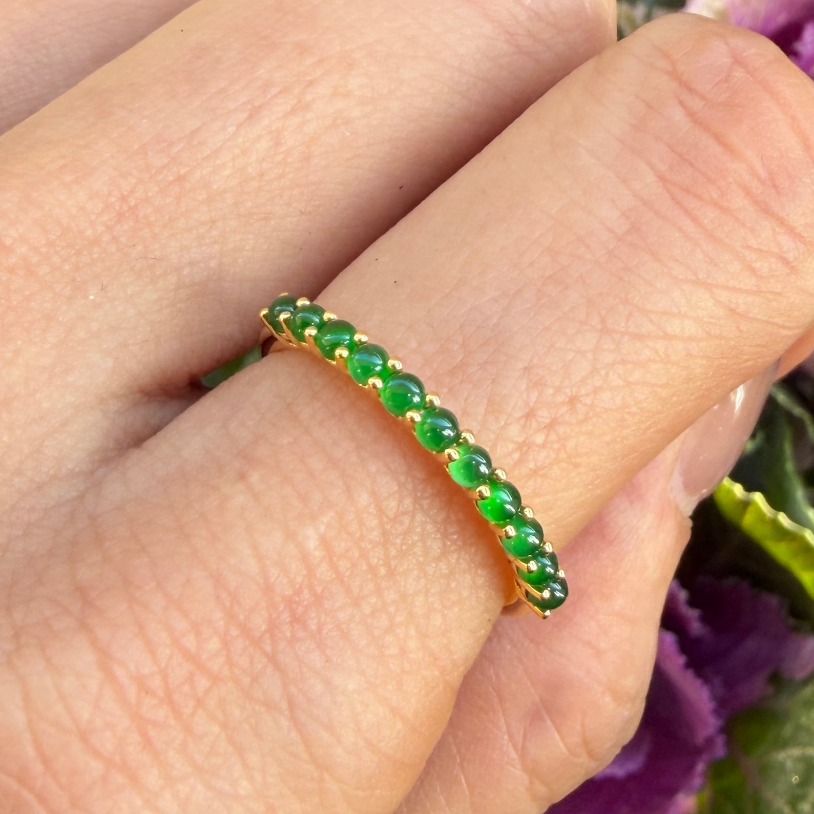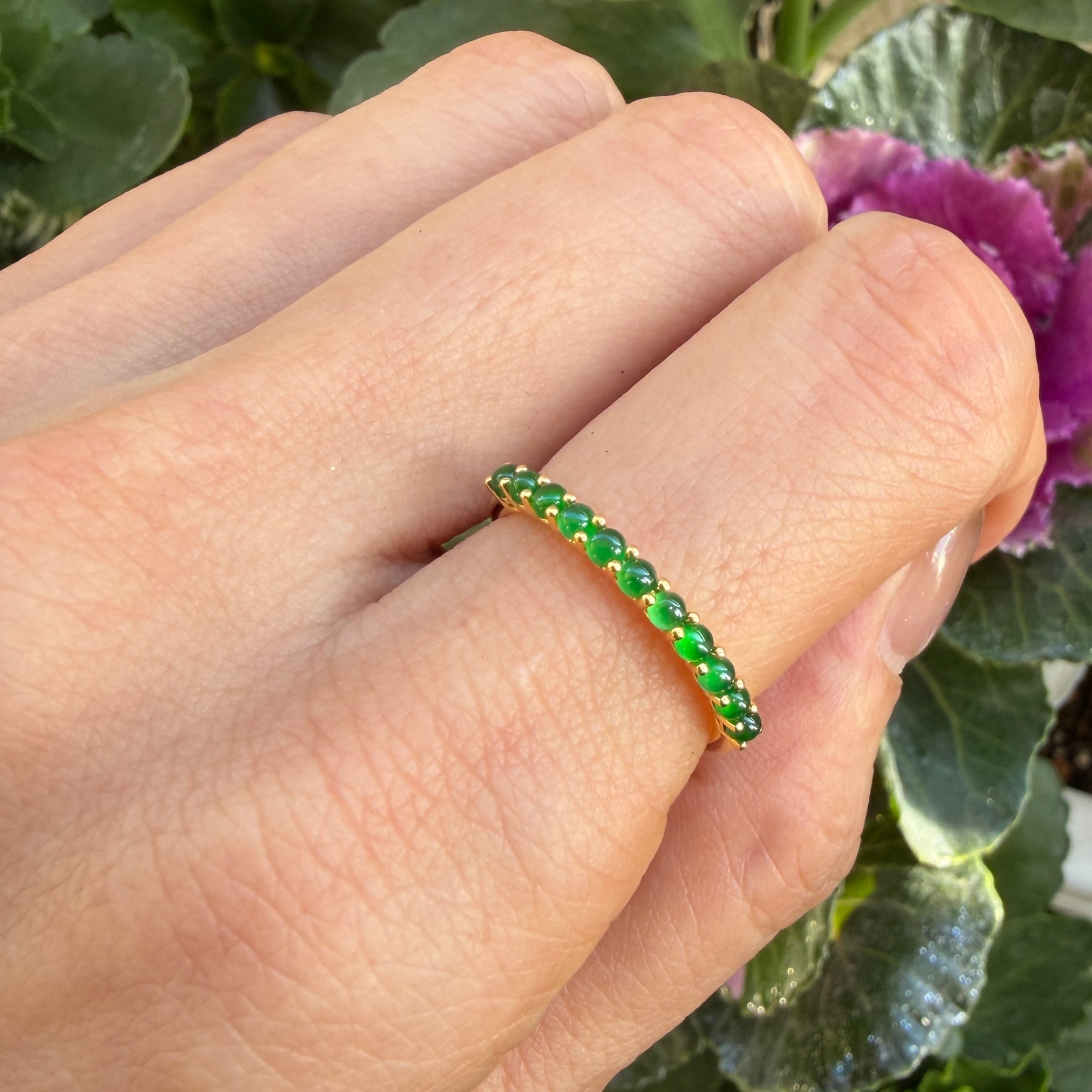 2mm Jade Half Eternity Gold Ring AMU-087