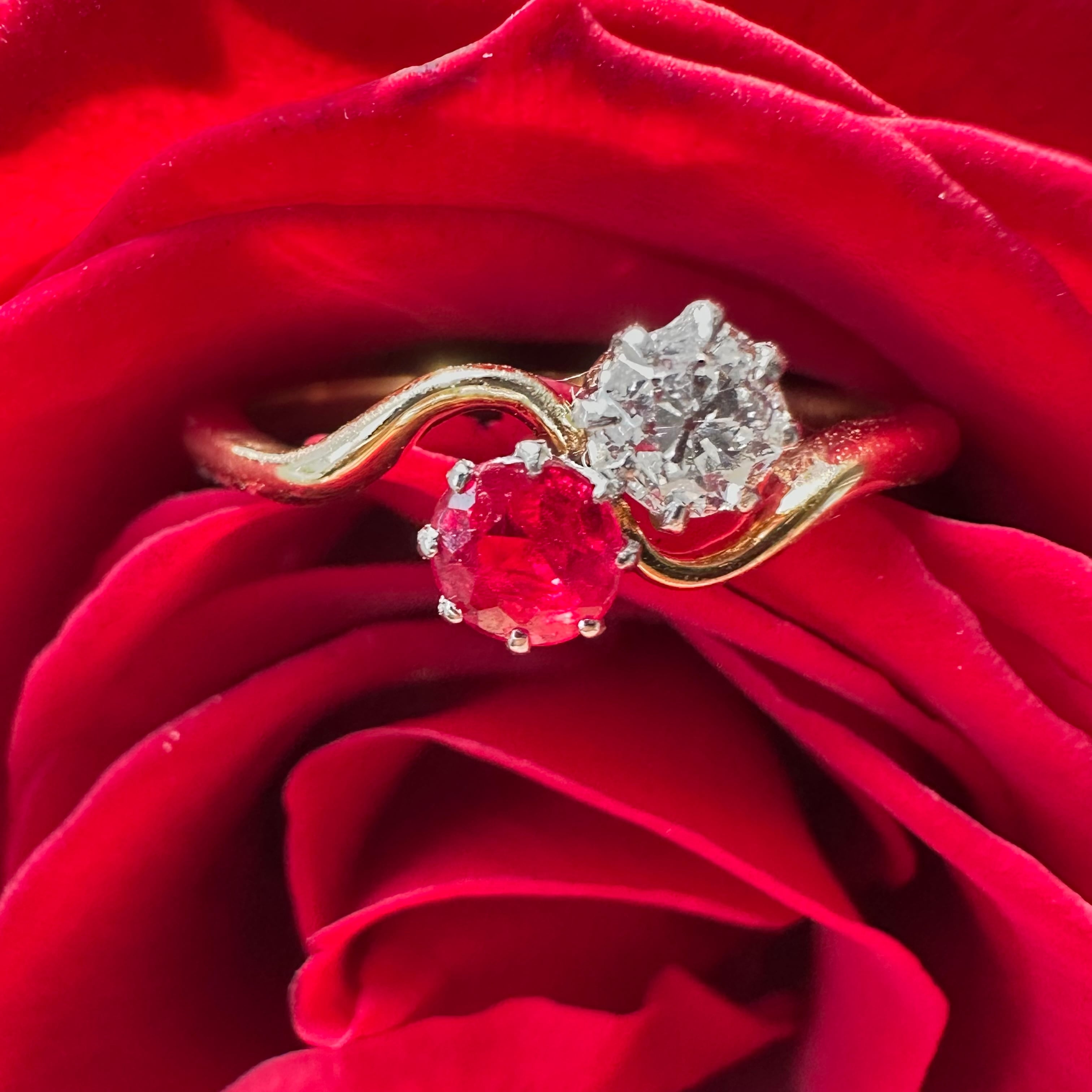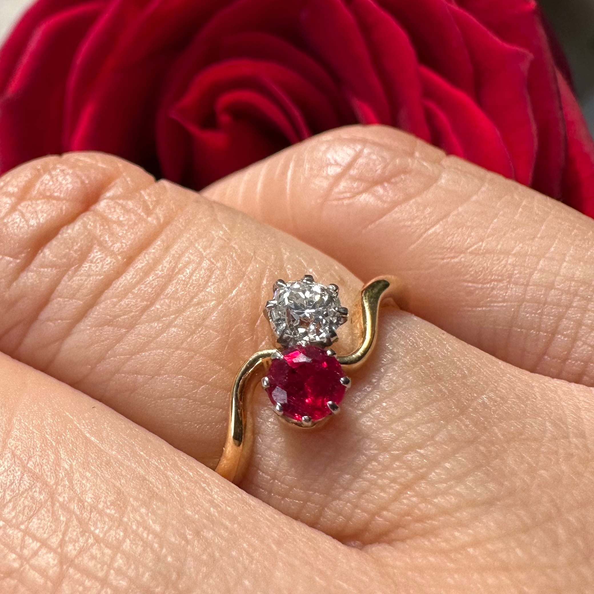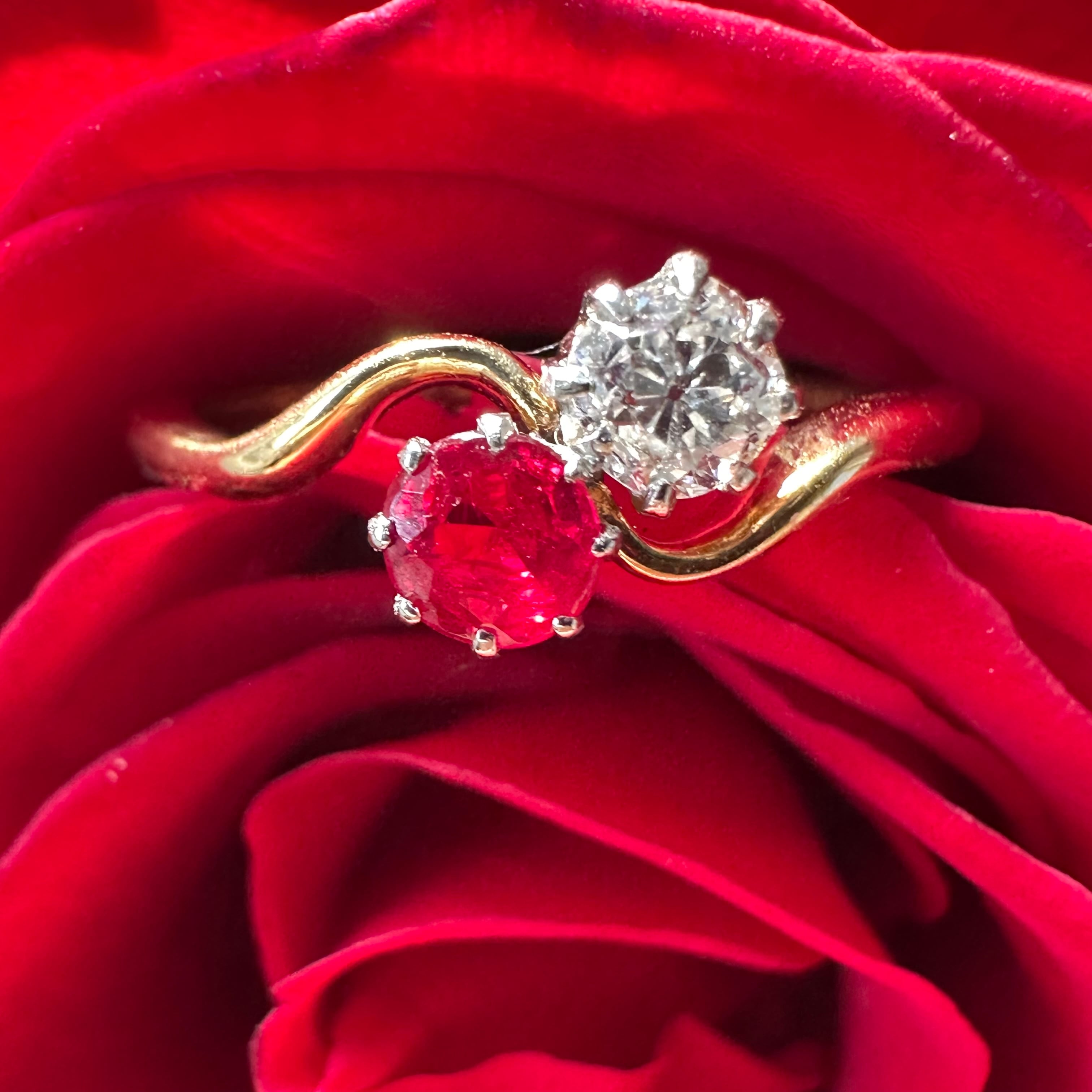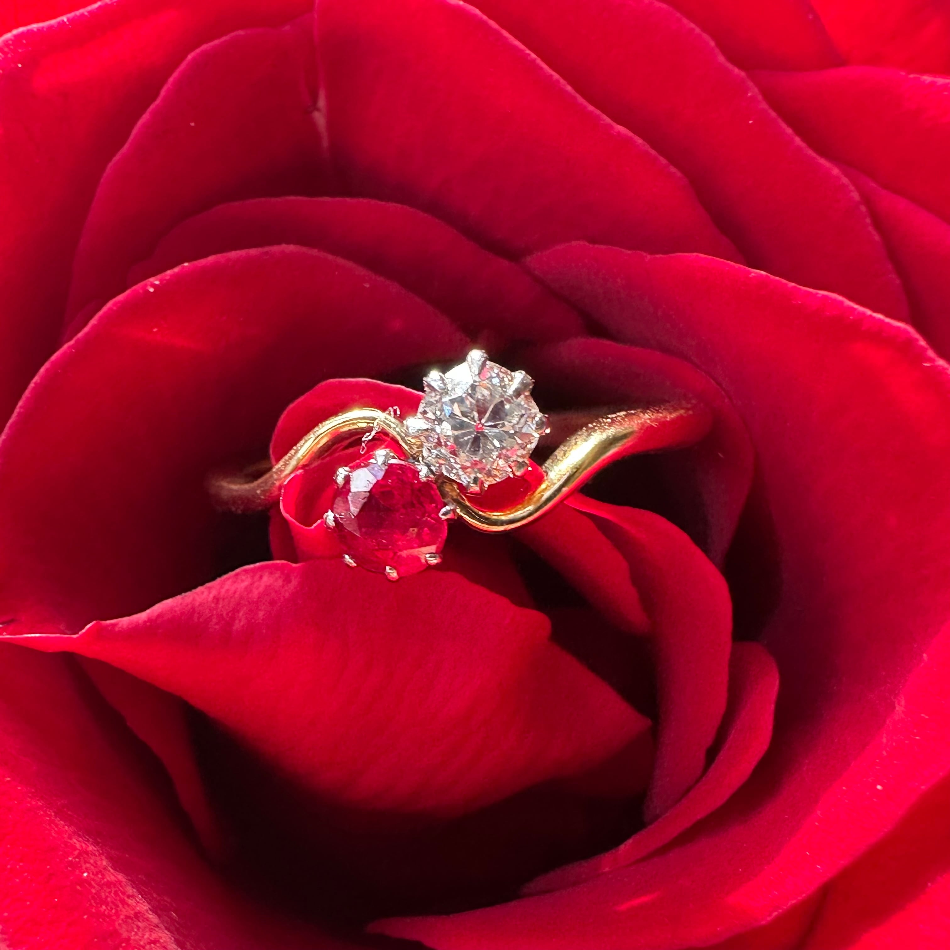 Ruby & Old Diamond Toi et Moi Ring