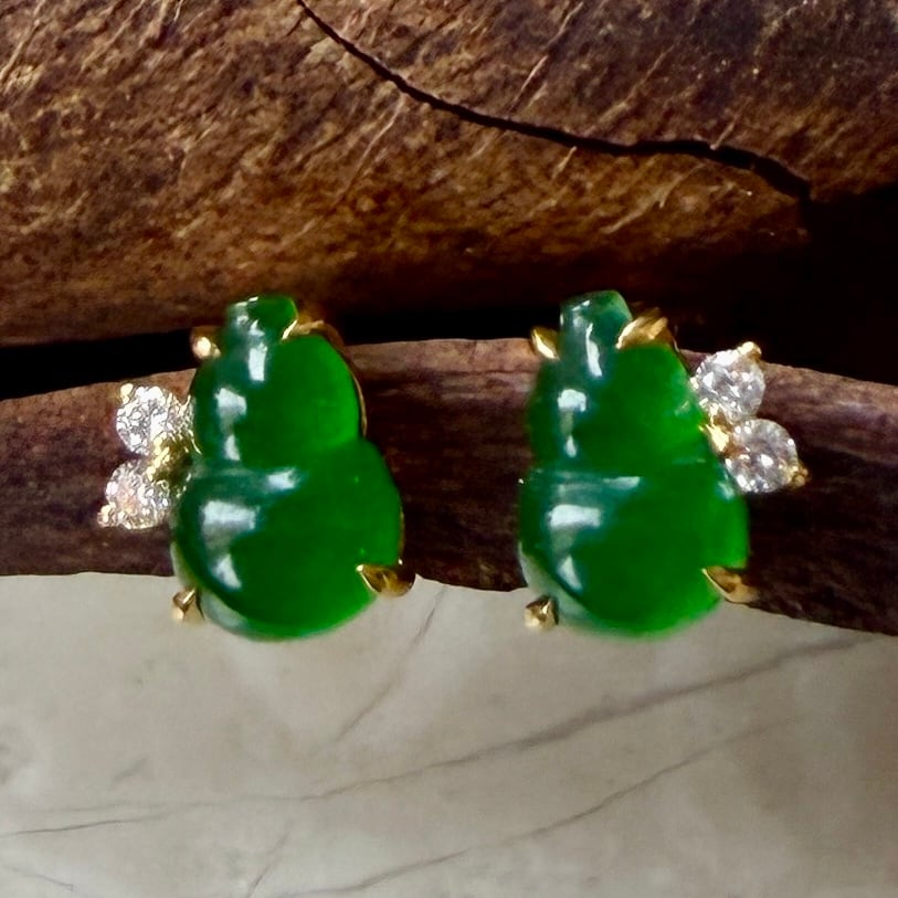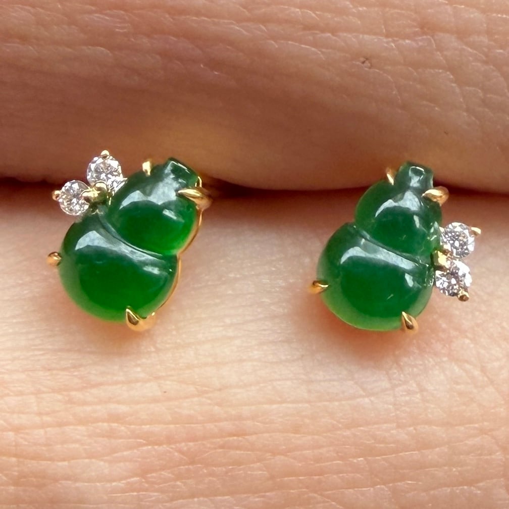 Jade earrings 翡翠ピアス 瓢箪型 RC0051