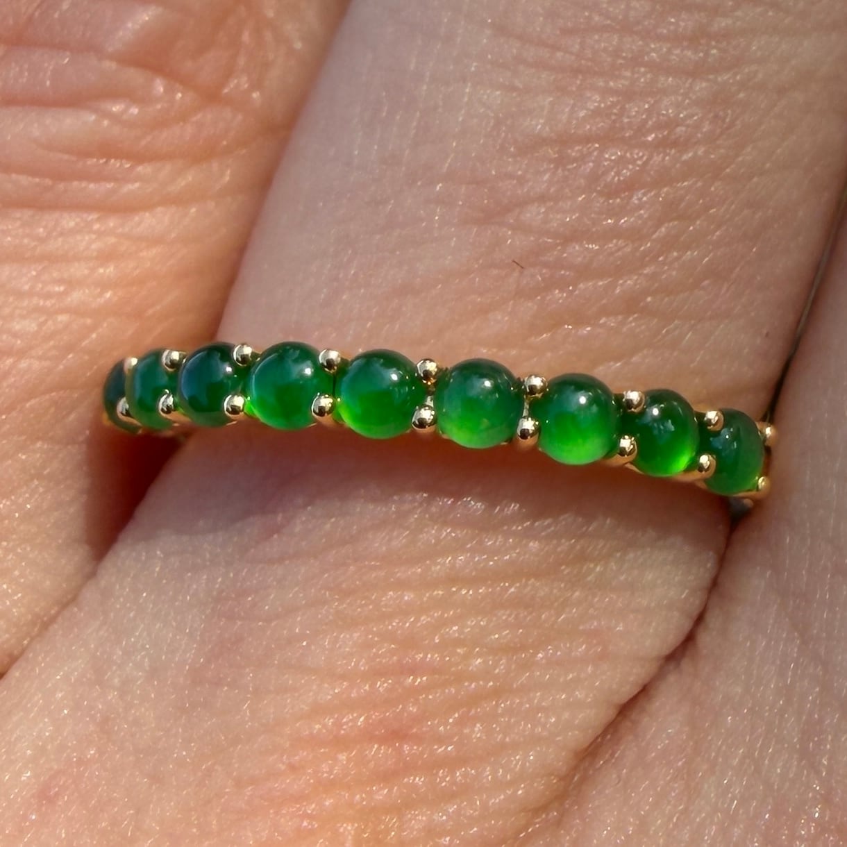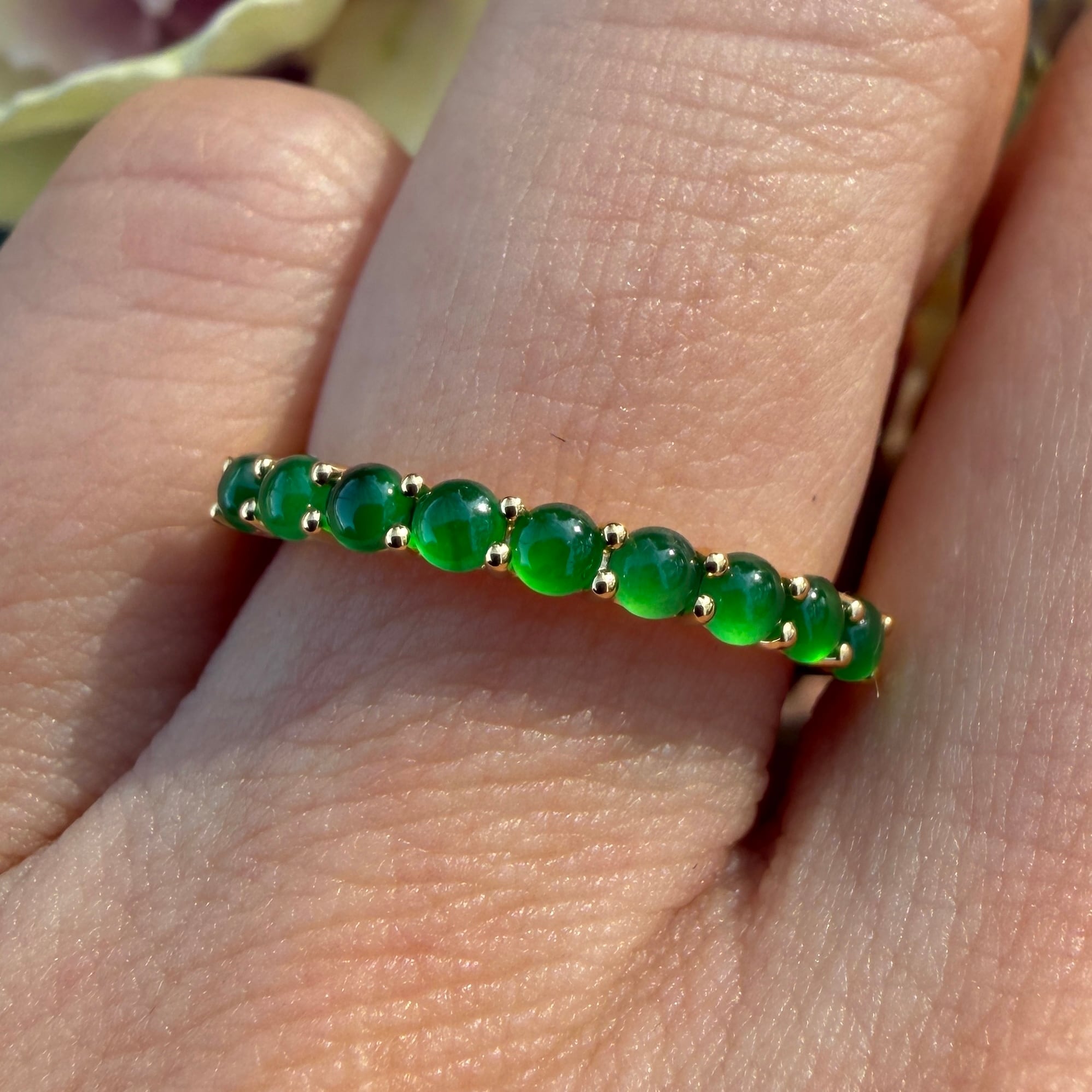 2.5mm Jade Half Eternity Gold Ring AMU-122