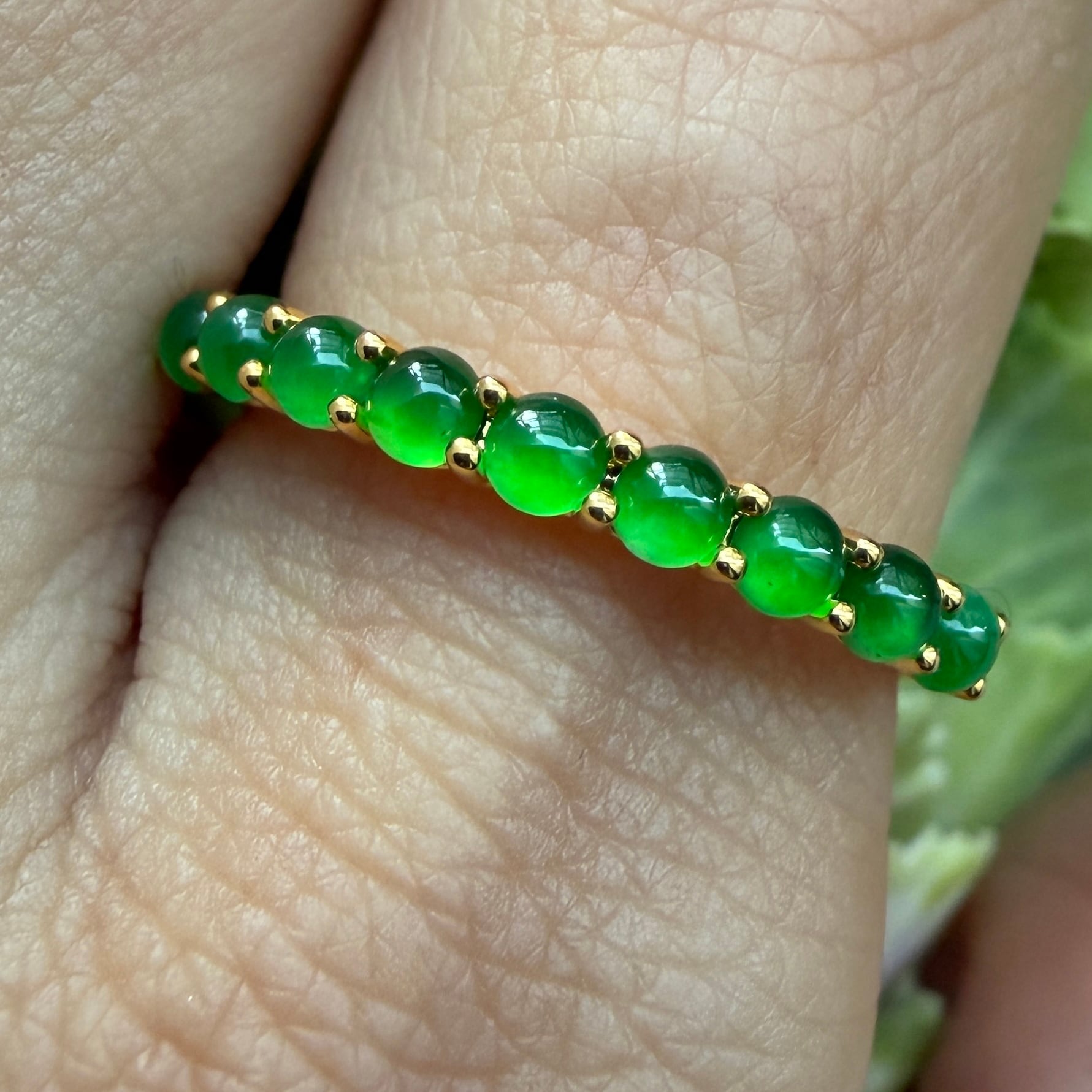 2.5mm Jade Half Eternity Gold Ring AMU-164