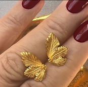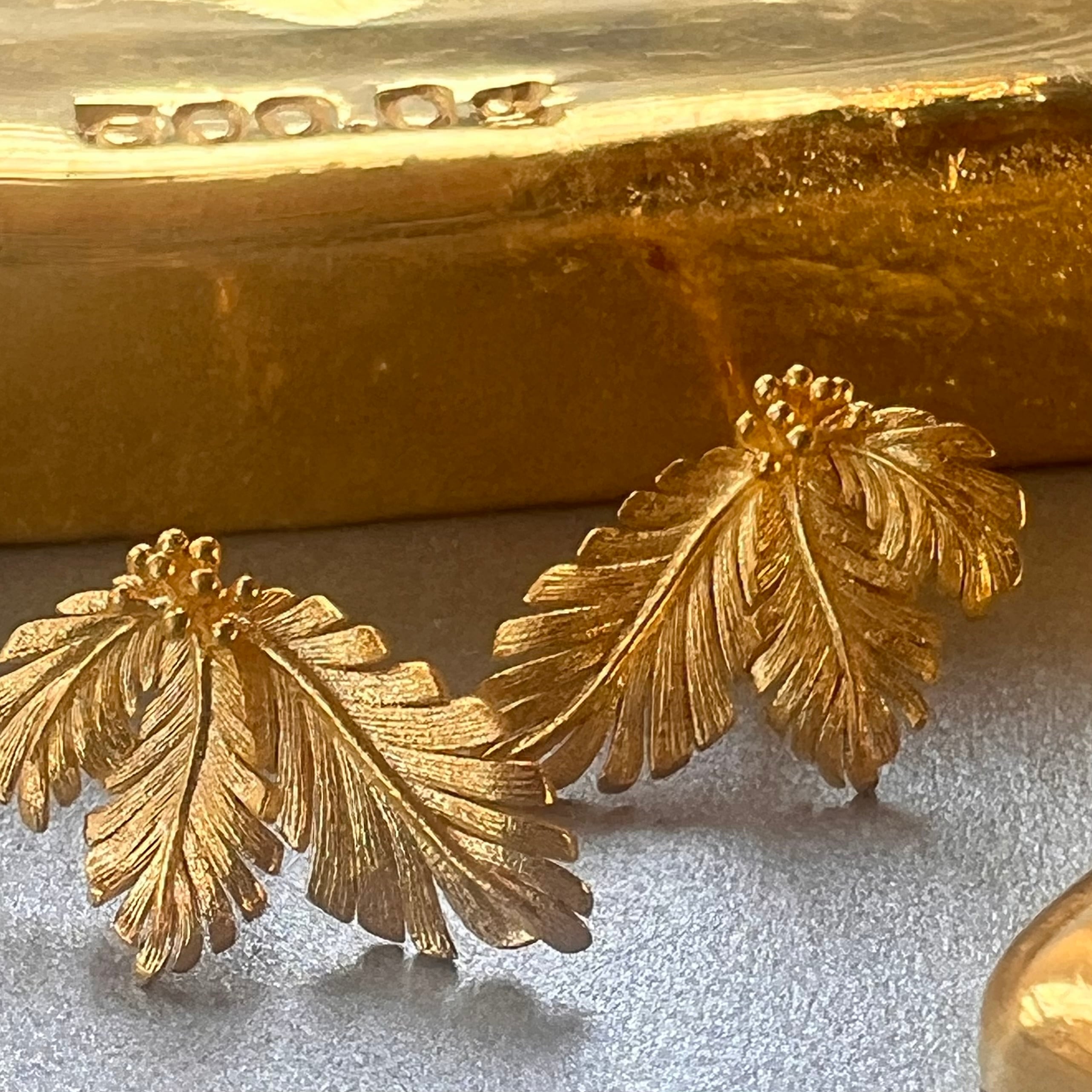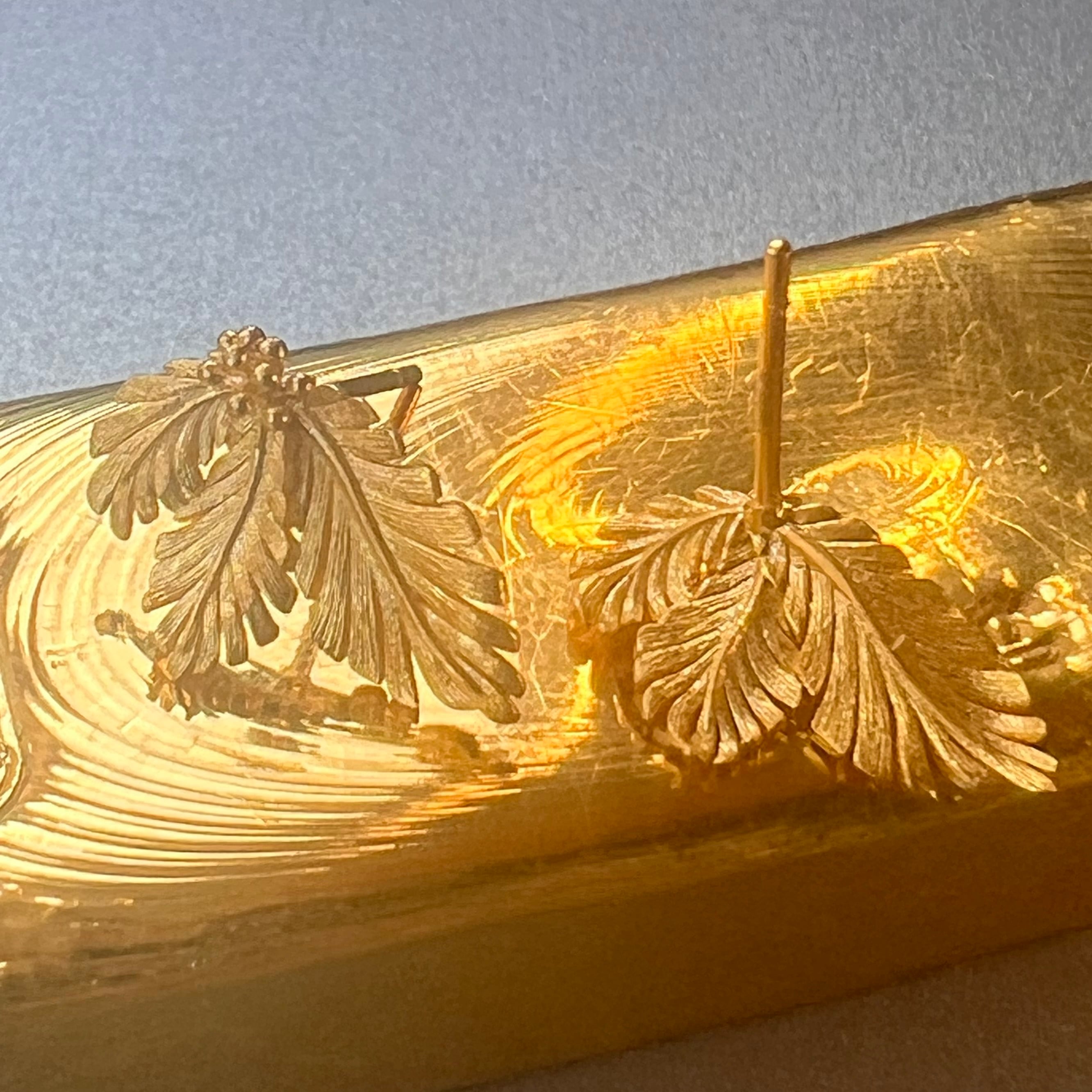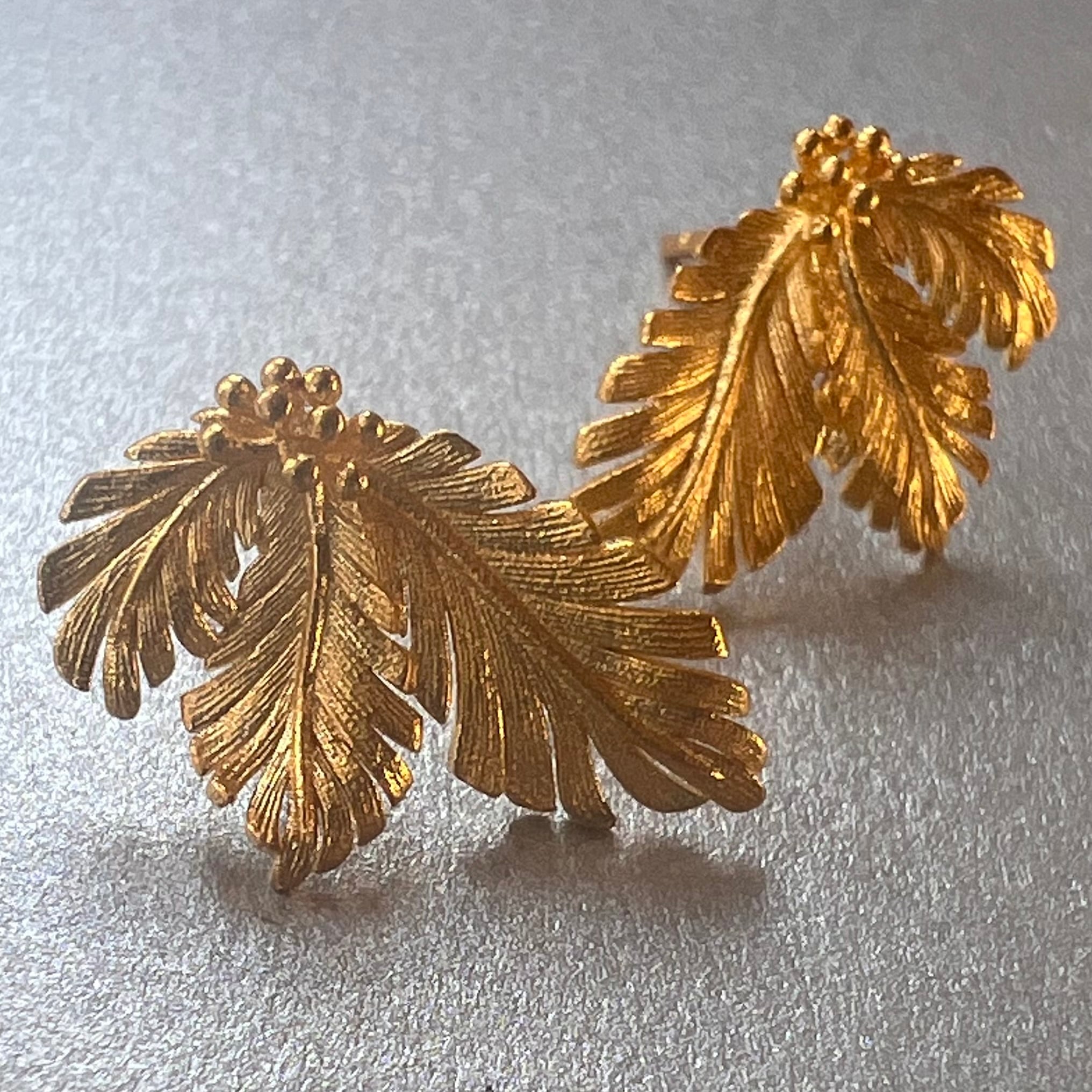 とても美しい24金、純金で出来た手作りの美しい葉っぱと実のデザインのピアスです。