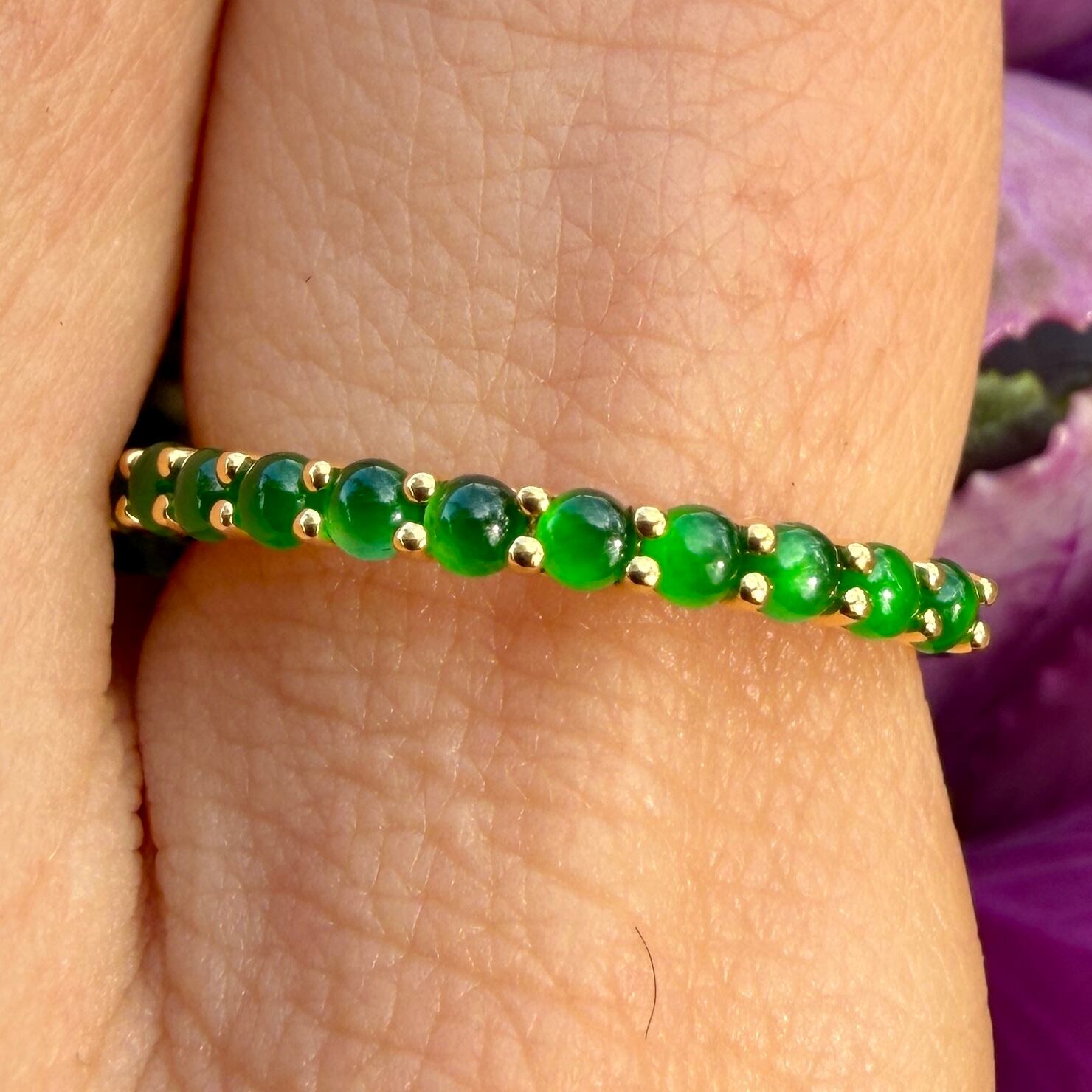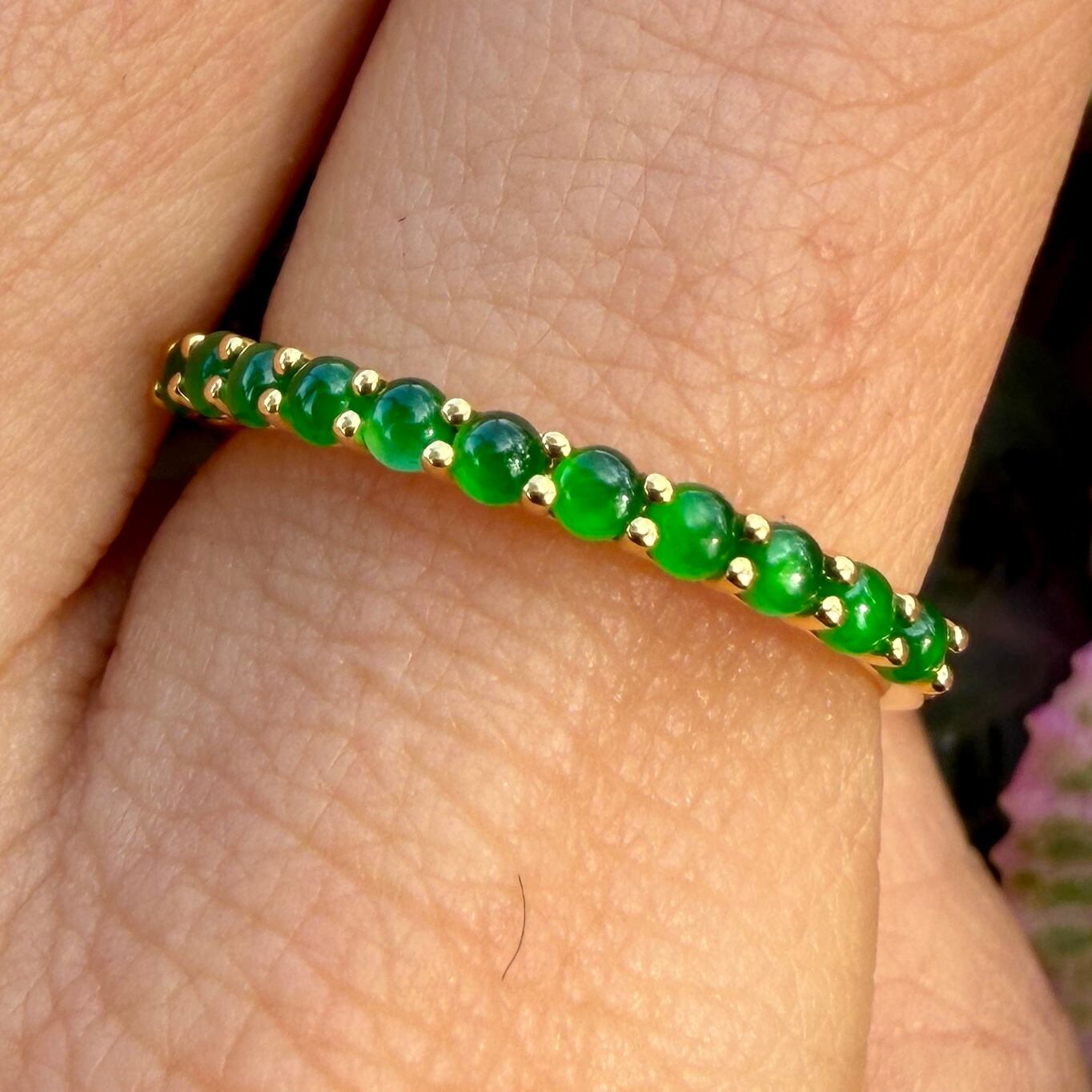 2mm Jade Half Eternity Gold Ring AMU-103