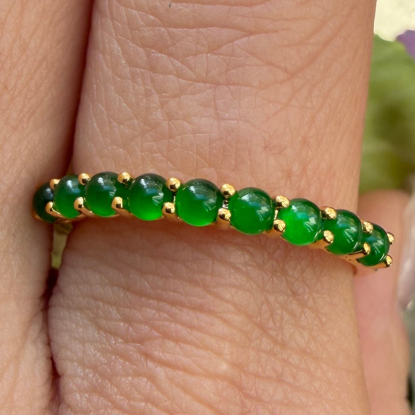 2.5mm Jade Half Eternity Gold Ring AMU-136