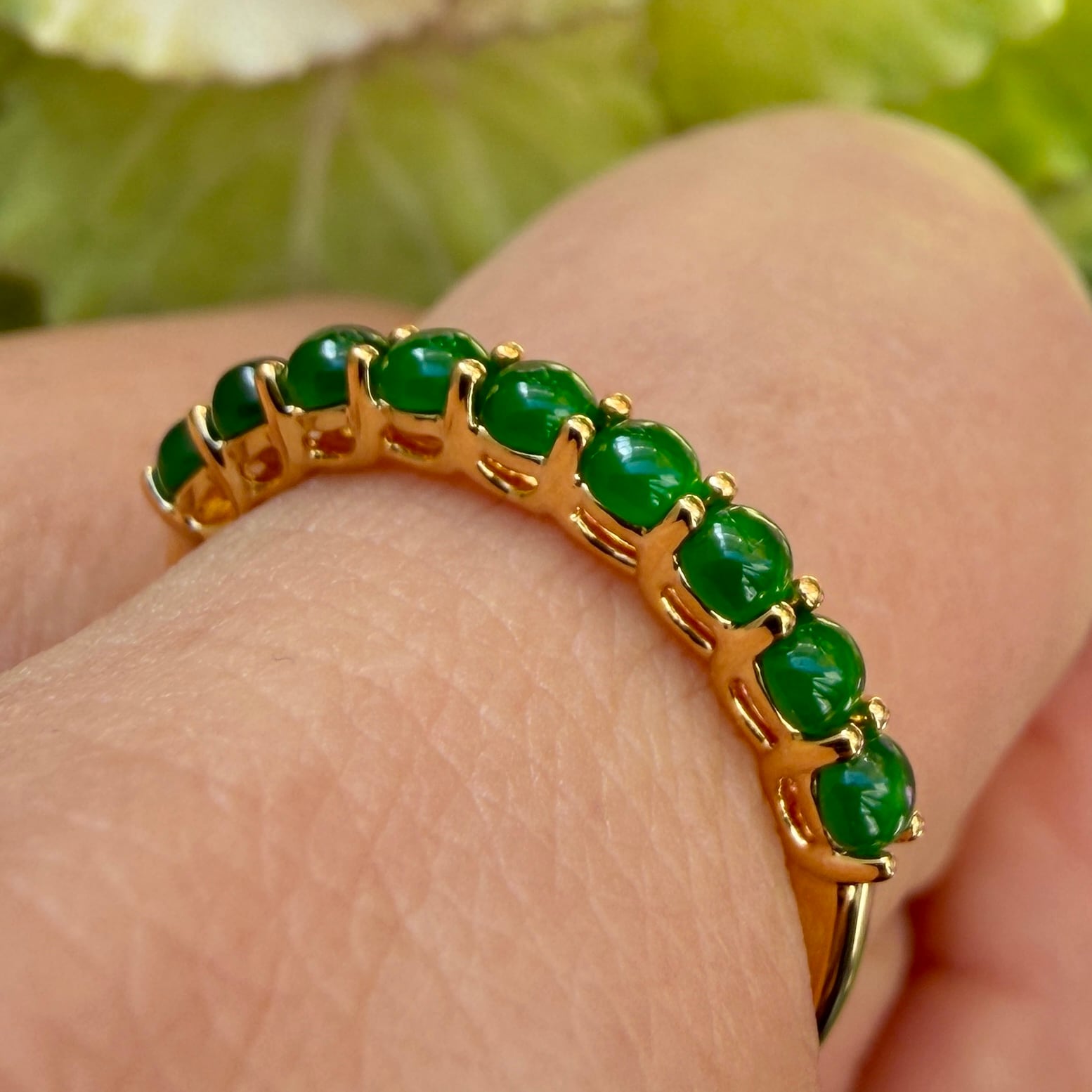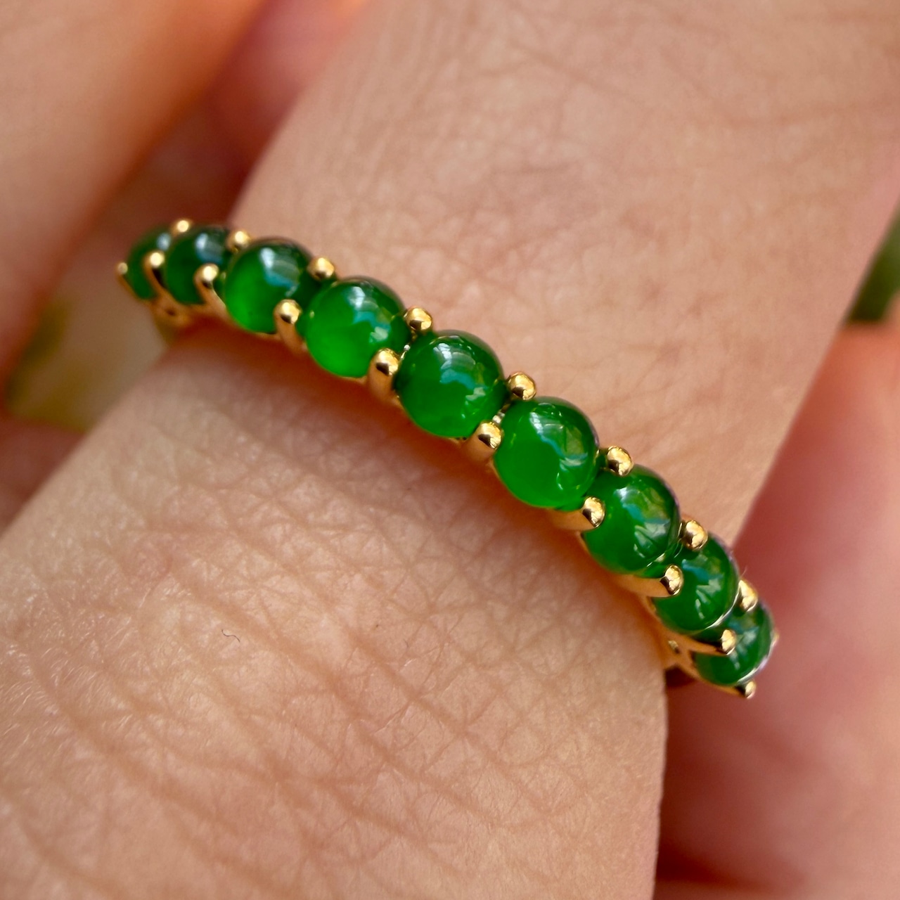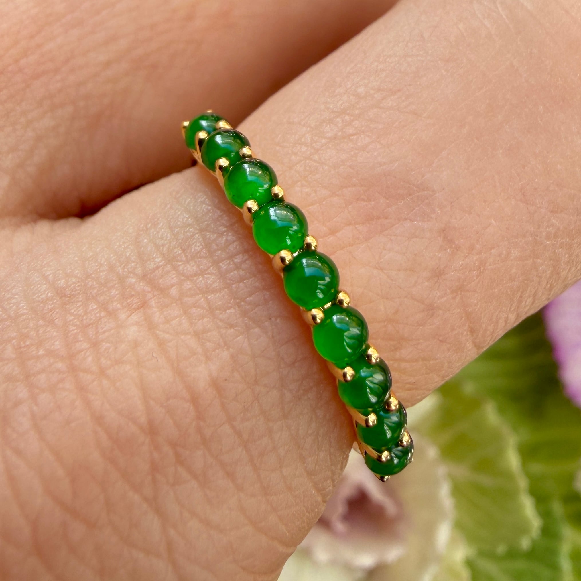 2.5mm Jade Half Eternity Gold Ring AMU-135