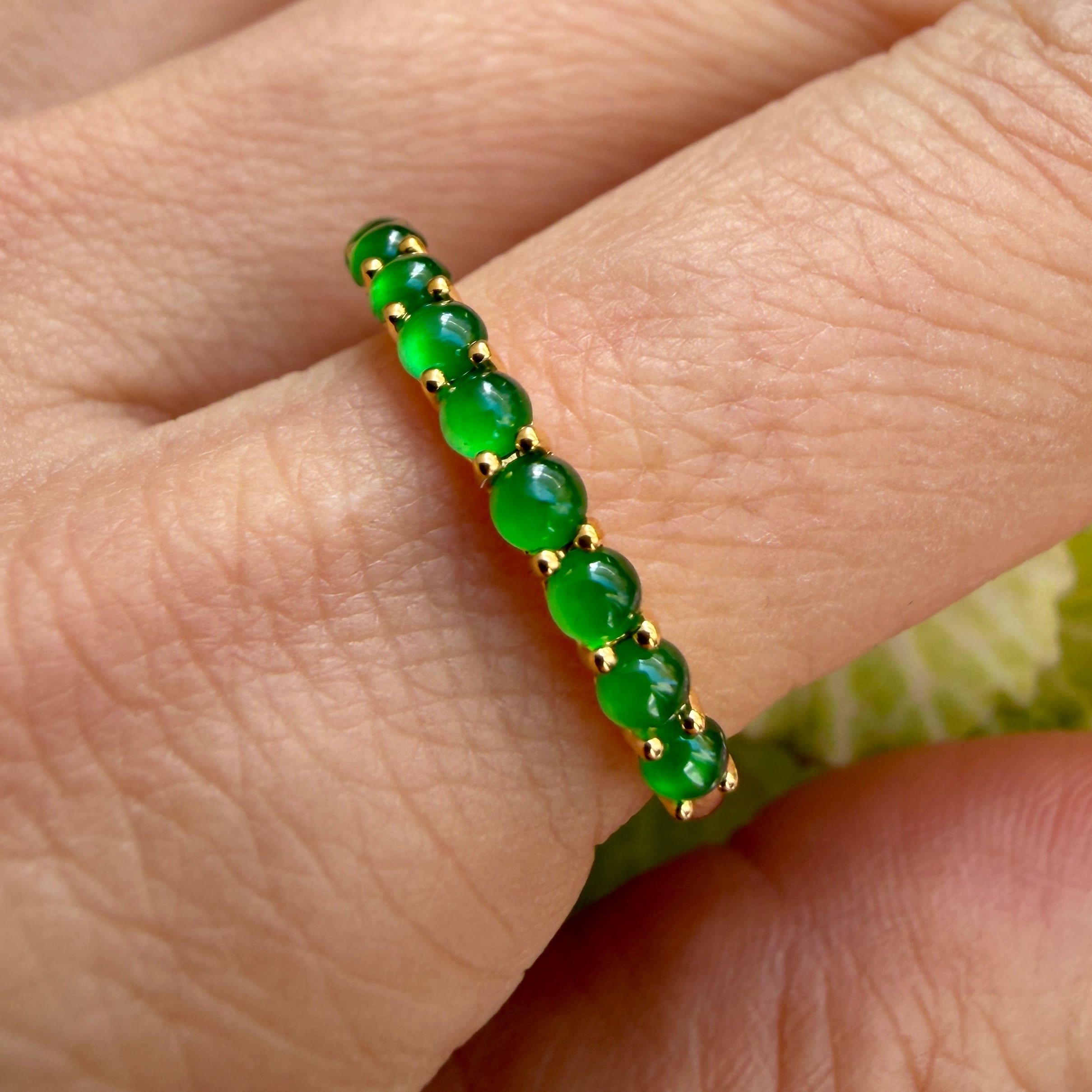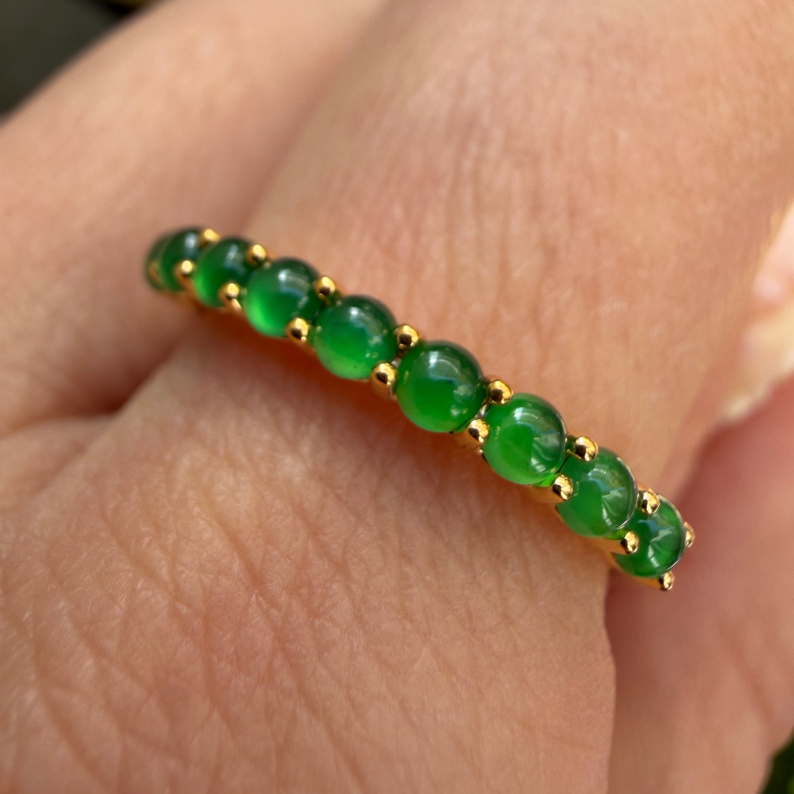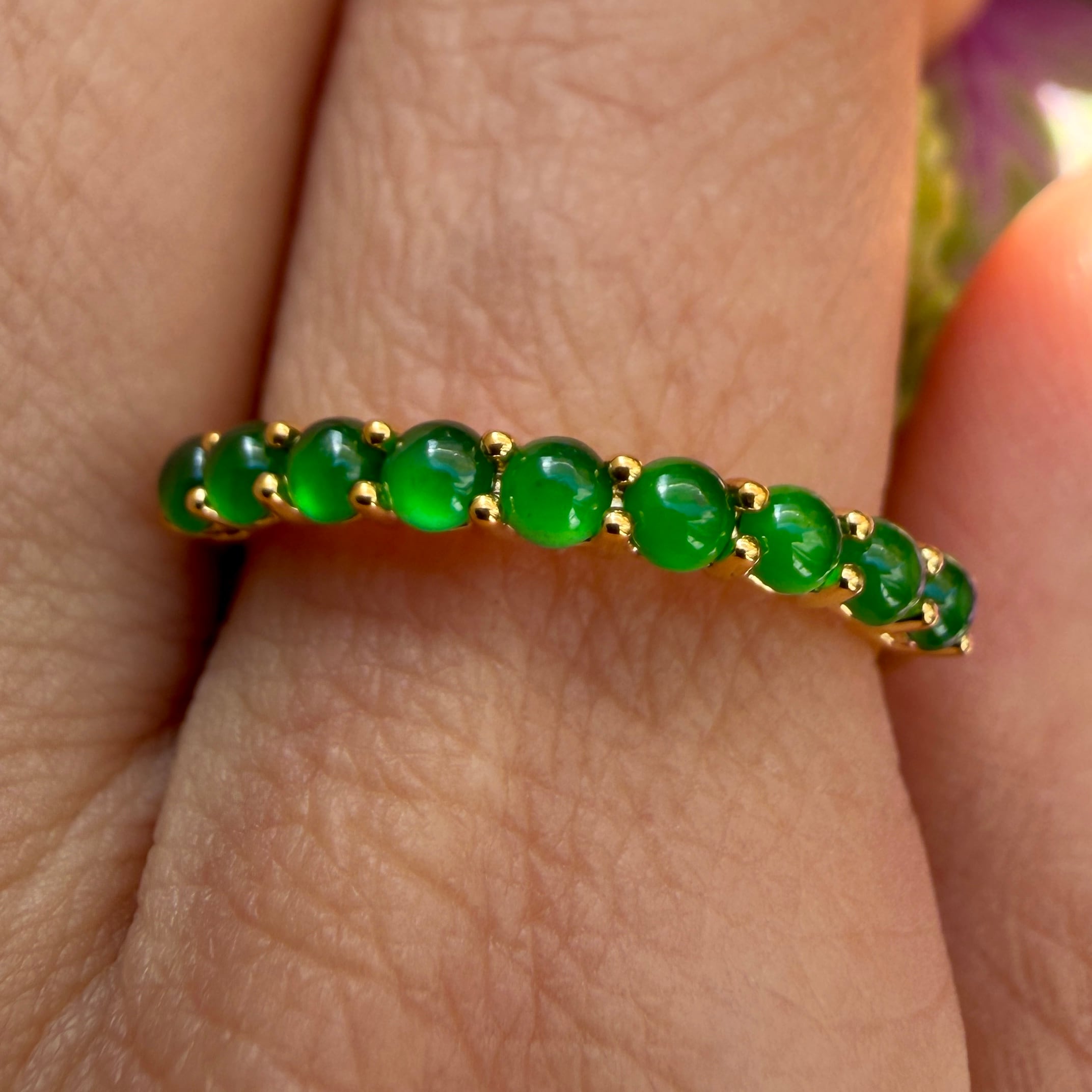 2.5mm Jade Half Eternity Gold Ring AMU-158