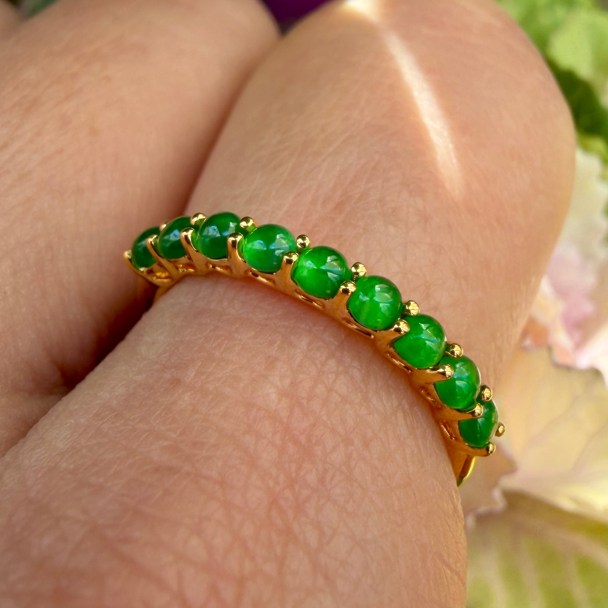 2.5mm Jade Half Eternity Gold Ring AMU-117