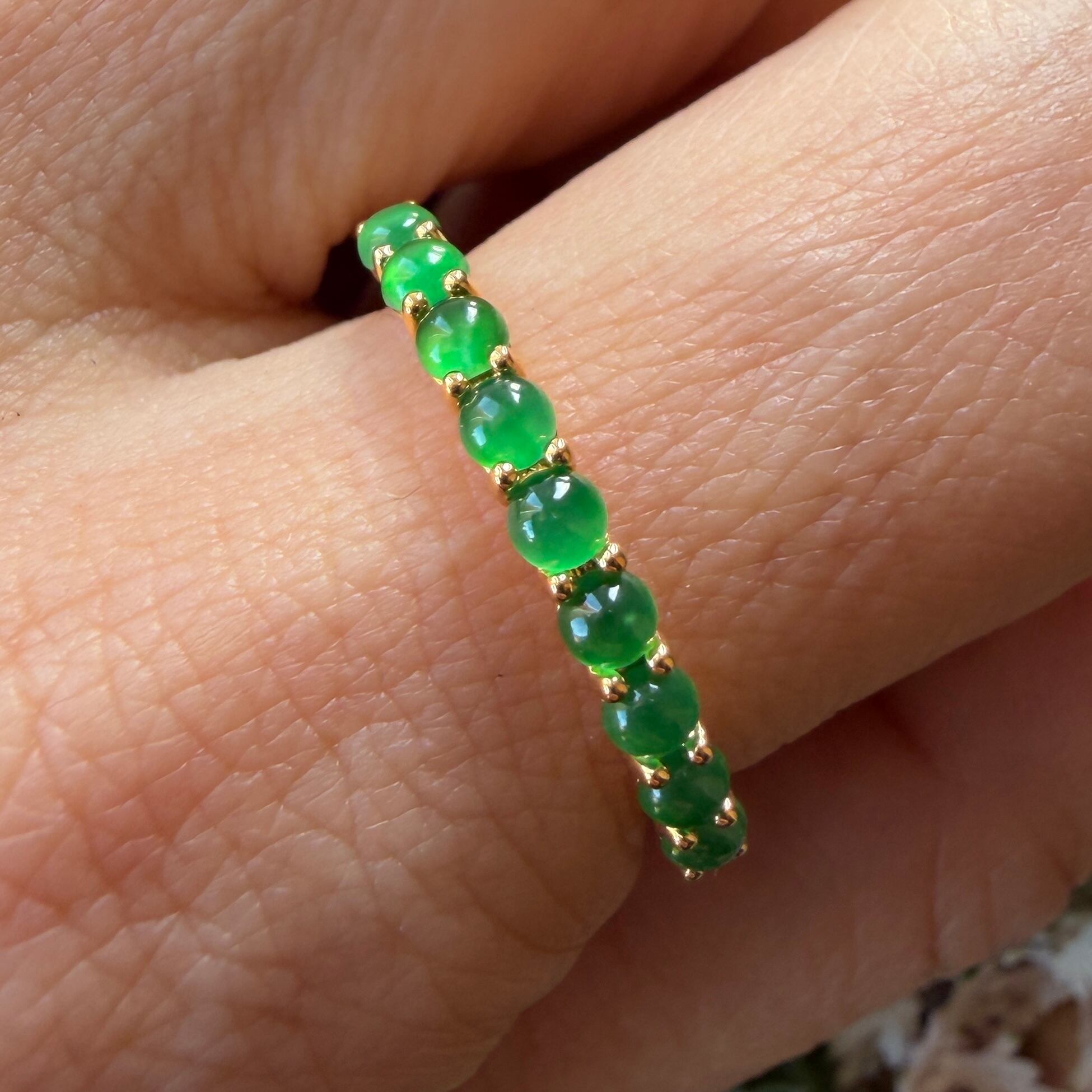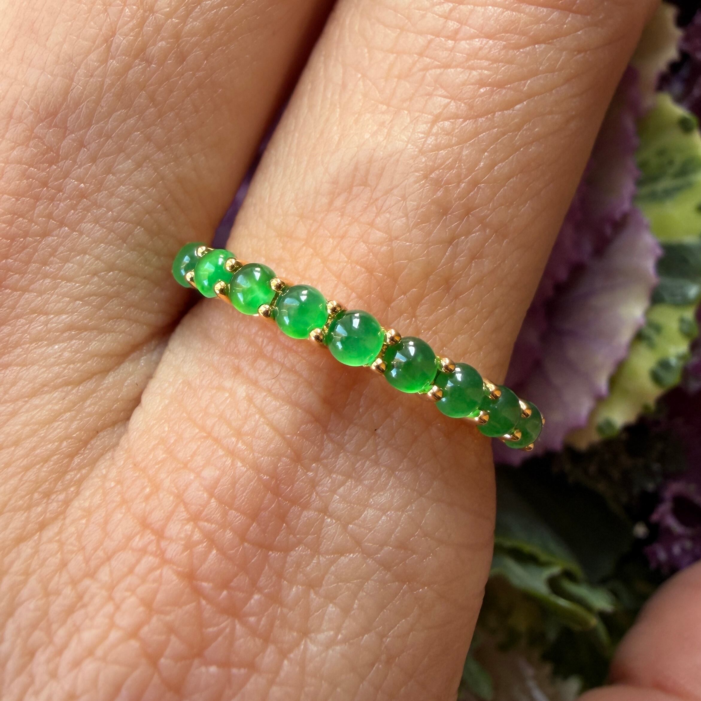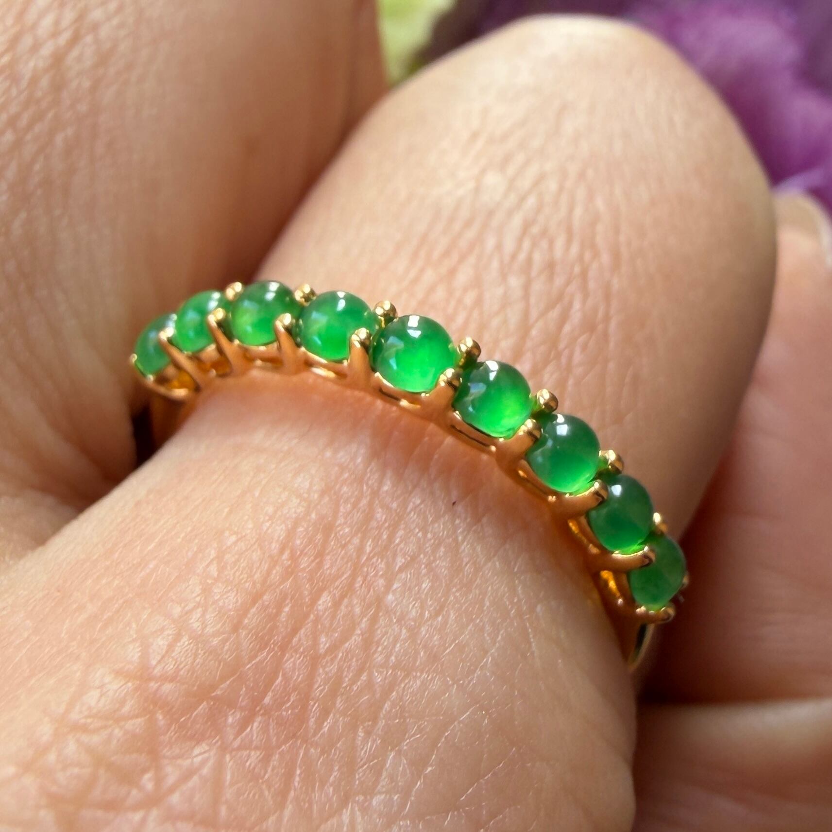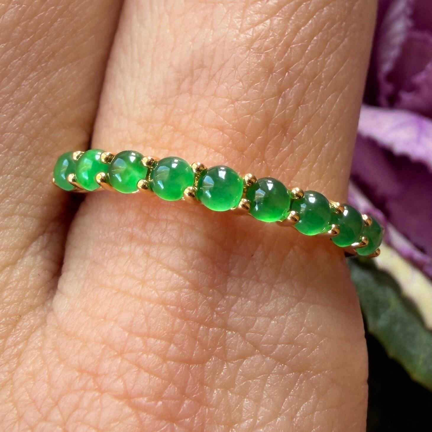 2.5mm Jade Half Eternity Gold Ring AMU-159