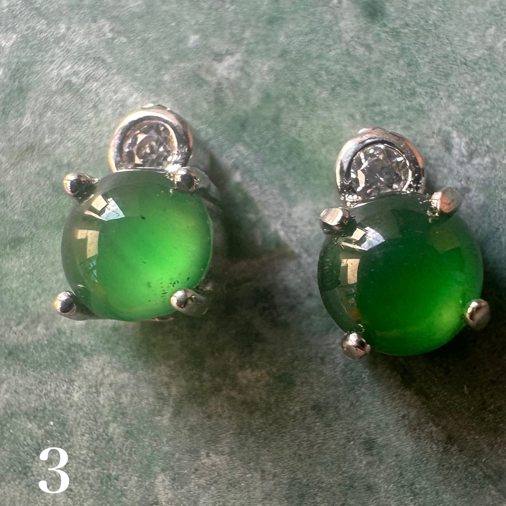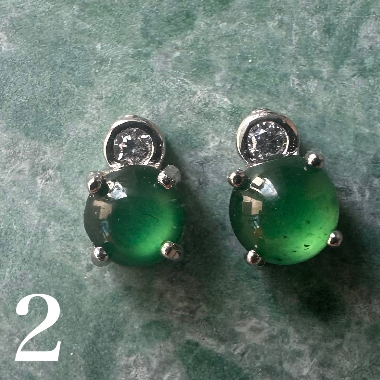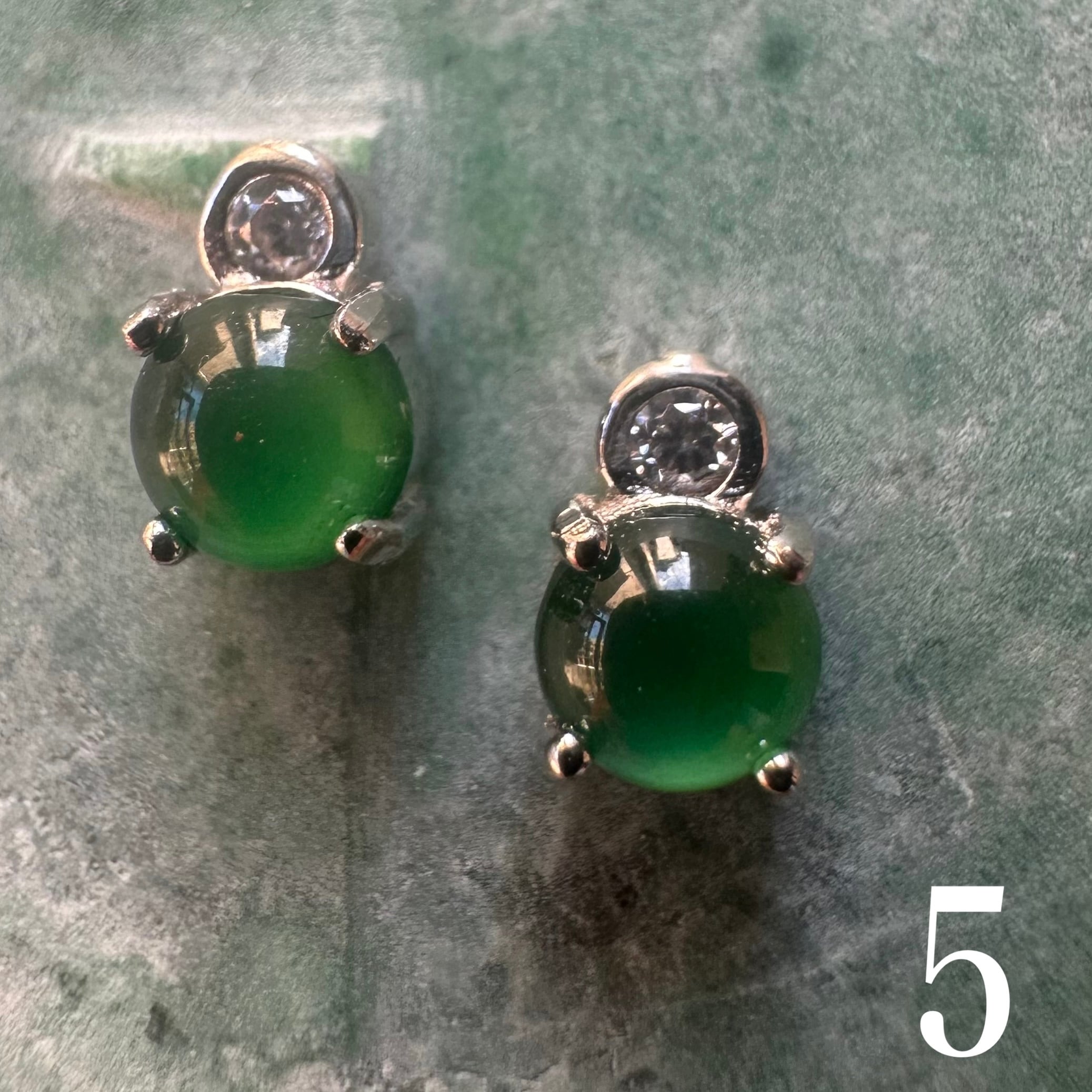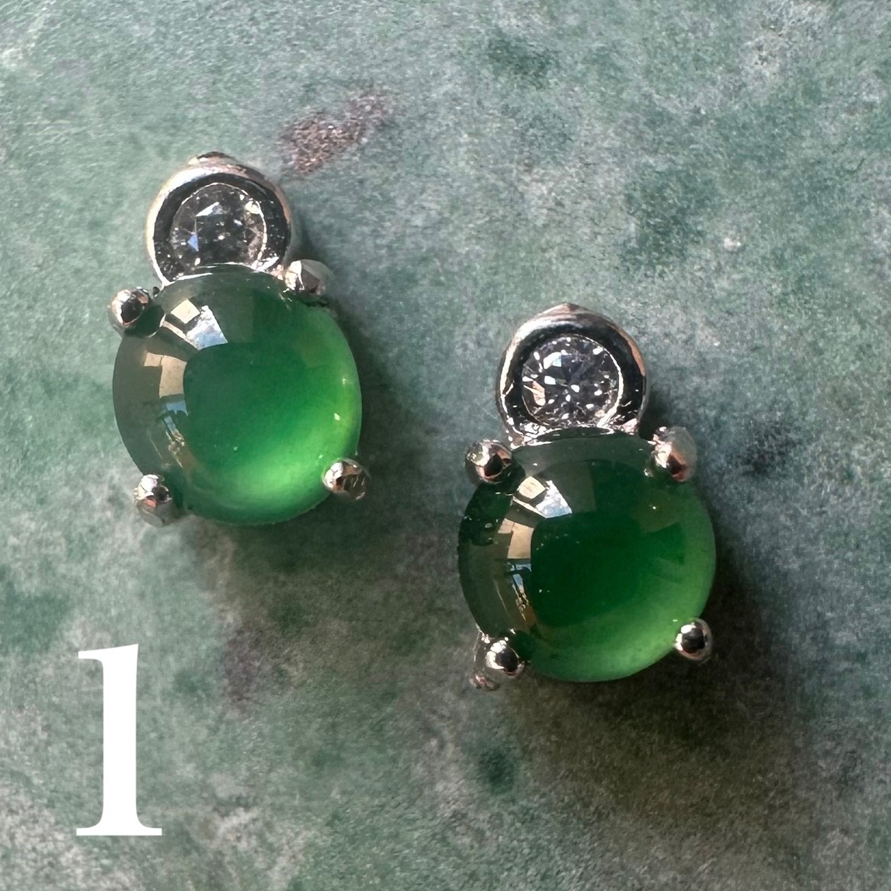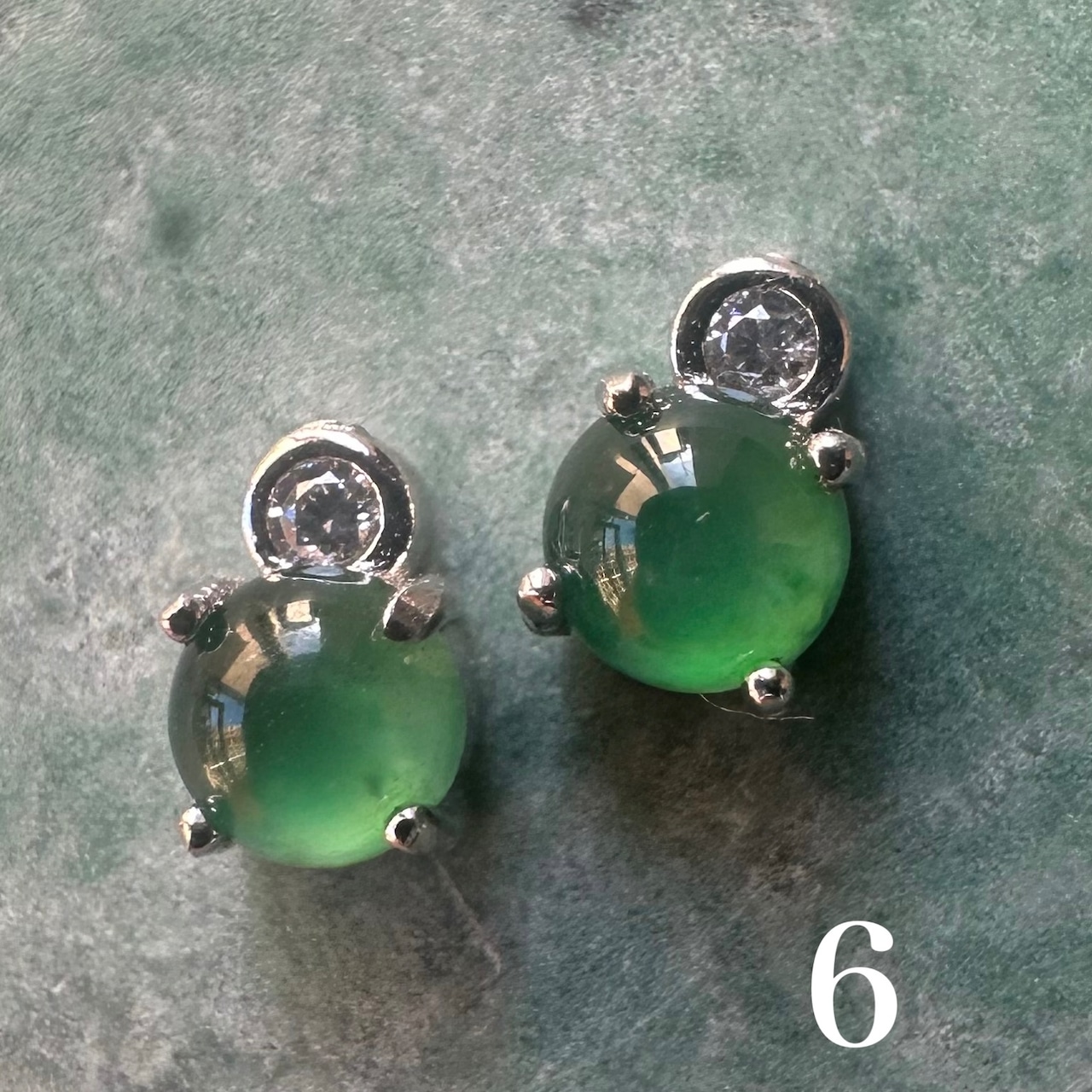 4mmの大粒の少しペールグリーンのカボションの天然翡翠を使用しています。しっとりとした透明感と、奥深い緑色が魅力の翡翠です。翡翠の美しさは古来より「玉の中の玉」と称えられ見る人の心をとらえて離しません。