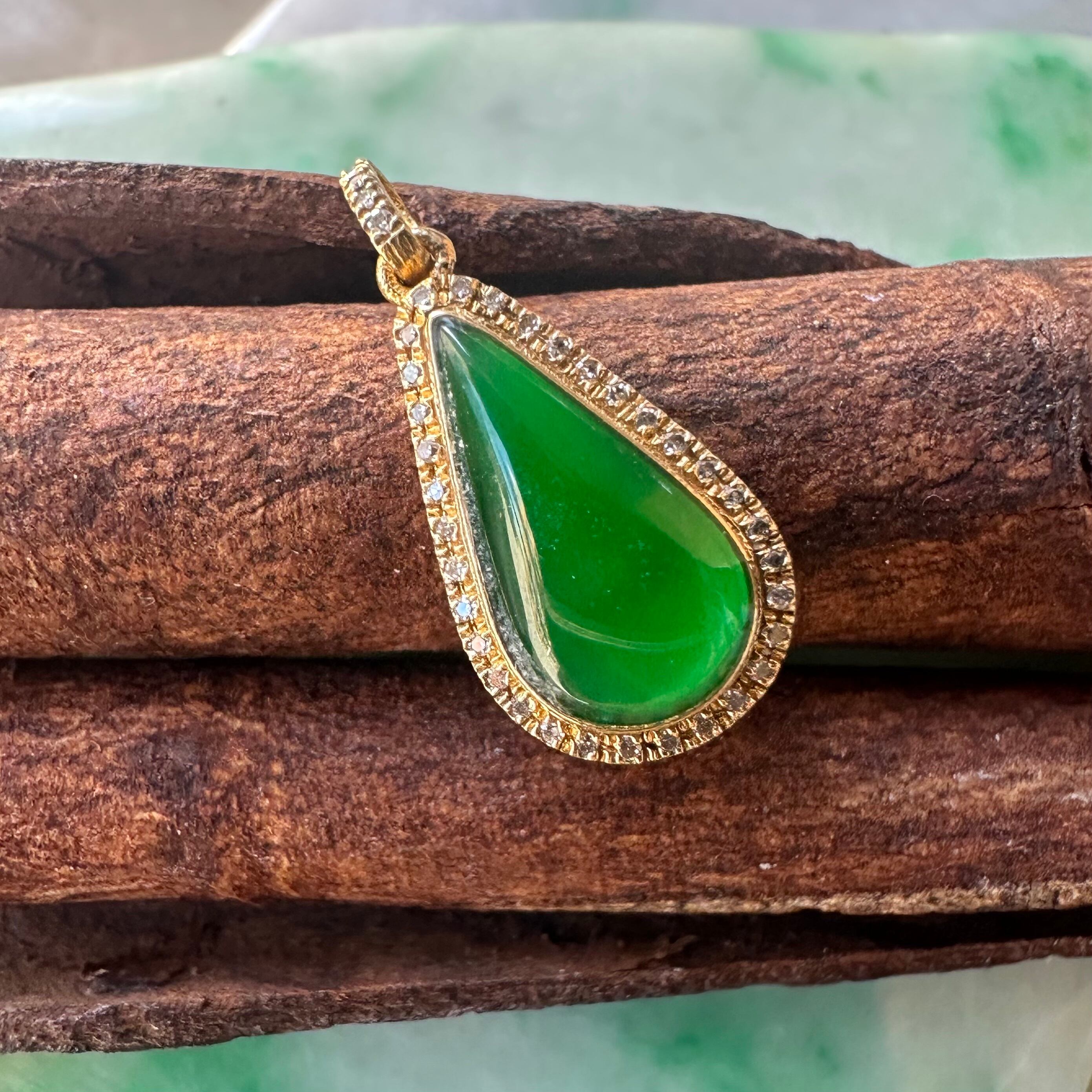 華やかな緑色が目にも眩しい美しい雫型のドロップ翡翠のペンダントトップです。