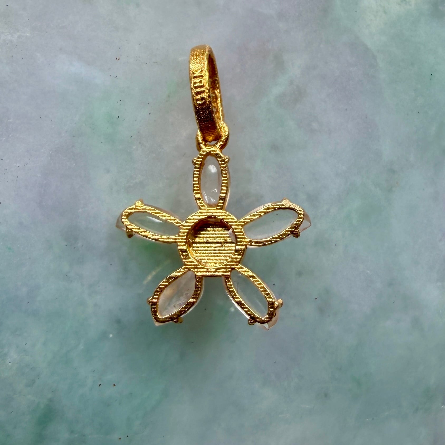 最も中華圏で宝石や金が売れ、皆がお金を稼ぎたい物入りの春節前にまとめ買いをする事で大袈裟に”おじさんもうこれじゃ儲けが無いよ!”と大袈裟にちょっと笑いながらニコニコとこれも買ってあれも買ってとお値段の交渉をしているつもりが、すっかりおじさんの話術とセールストークにハマり、沢山の美しいチャームをいくつも買ってしまったうちの一つのお品です。