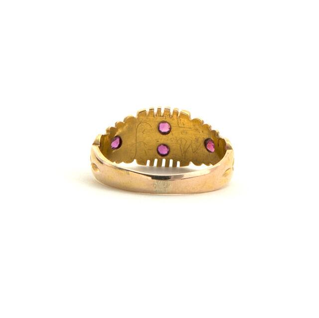 引っかかりが無いため日常使いにも向いています。イギリスではこのようなリングをリングを代々受け継ぎ日常使いにしている方や他のアンティークリングと重ね使いをしている方を多く見かけます。