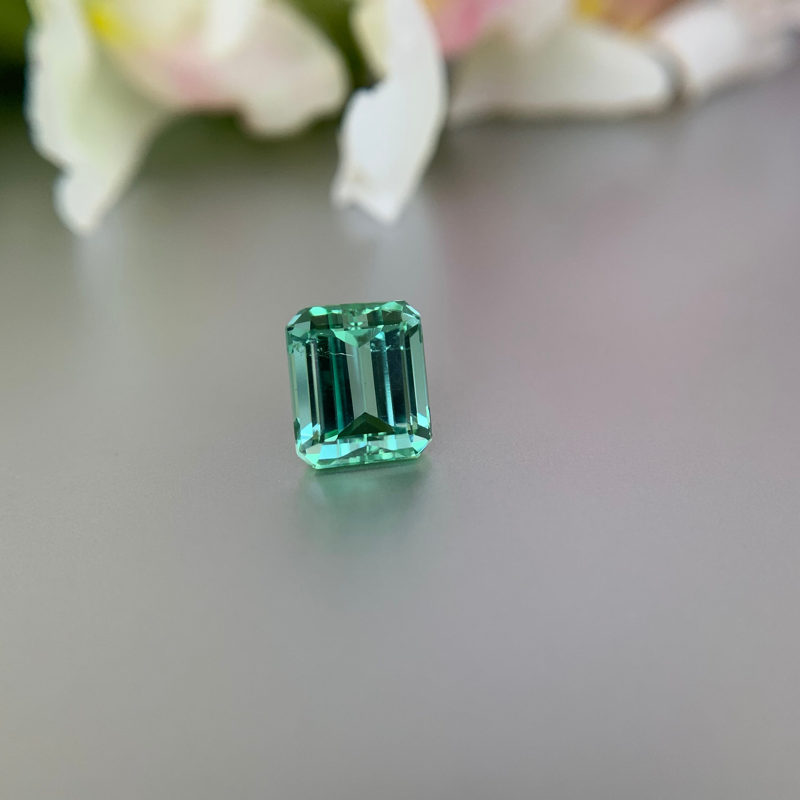 3.42ct まだあまり日本では知られていない鉱山の非加熱トルマリンです。今回はちょっとお値段が高めのミント色の極上の大きな原石を分けて貰い私が1番美しく見えると思うアッシャーカットにして欲しいとオーダーしたのですが、勝手にエメラルドカットに仕上げられていました!(笑プラチナと合わせてクラシカルなリングにしてもあえてマットなゴールドやプラチナと合わせてモダンなリングにしても素敵な石です。