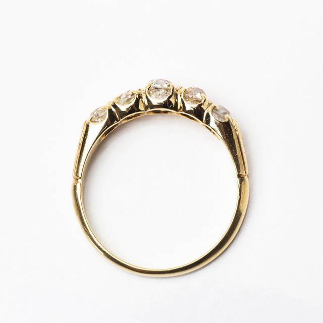 このハーフフープリングはころりとした厚みのあるオールドマインカットダイヤモンドの輝きが本当に美しいヴィクトリア時代に作られたリングです。