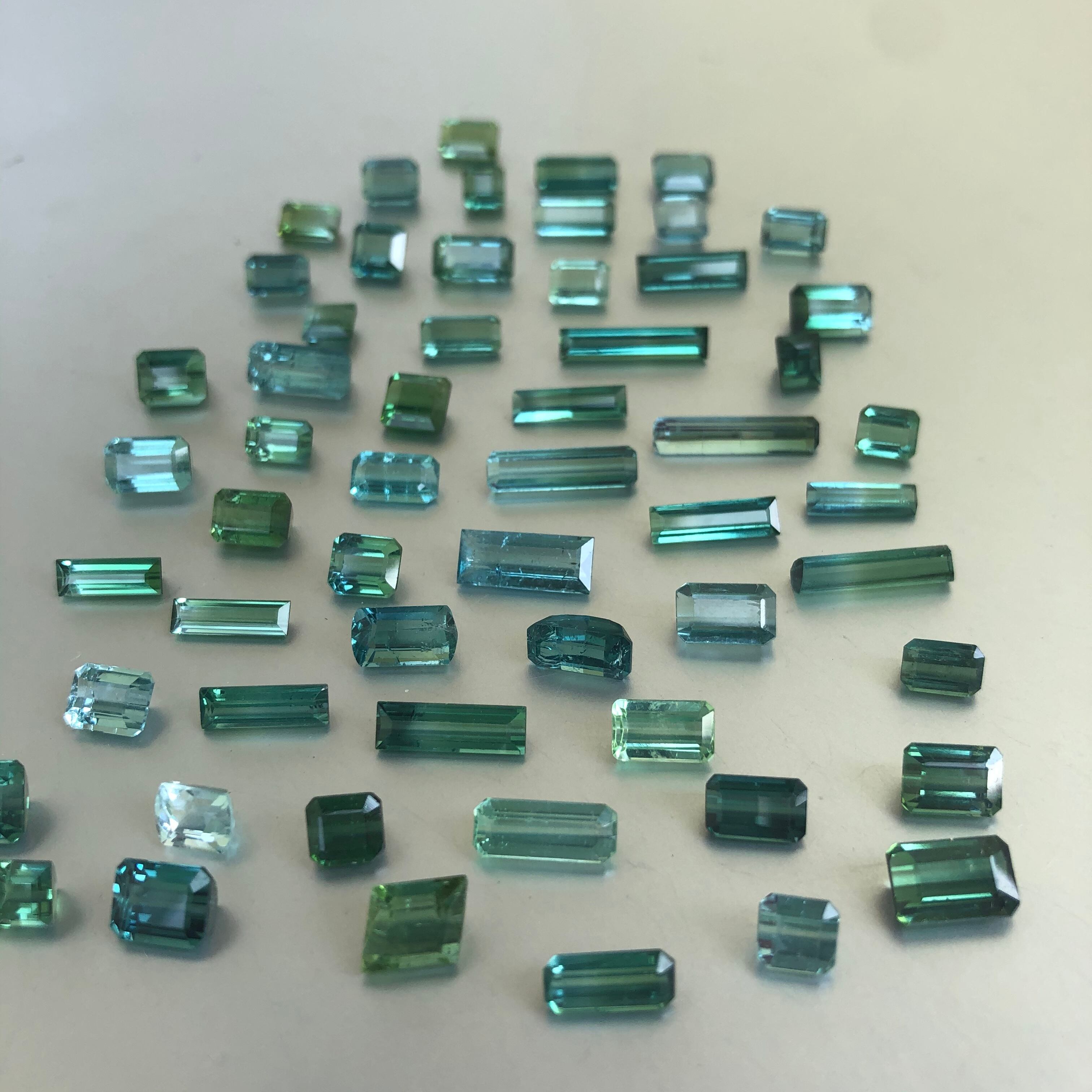 最近私が力を入れている鉱山から出たグリーンブルー系のトルマリン60ピース。今回ご提供のトルマリンは全て同じエリアの鉱山から産出したトルマリンで原石を地元のカッターさんがトルマリン原石を生かしたゴロりんという厚みのあるカットに仕上げた物が多く含まれます。