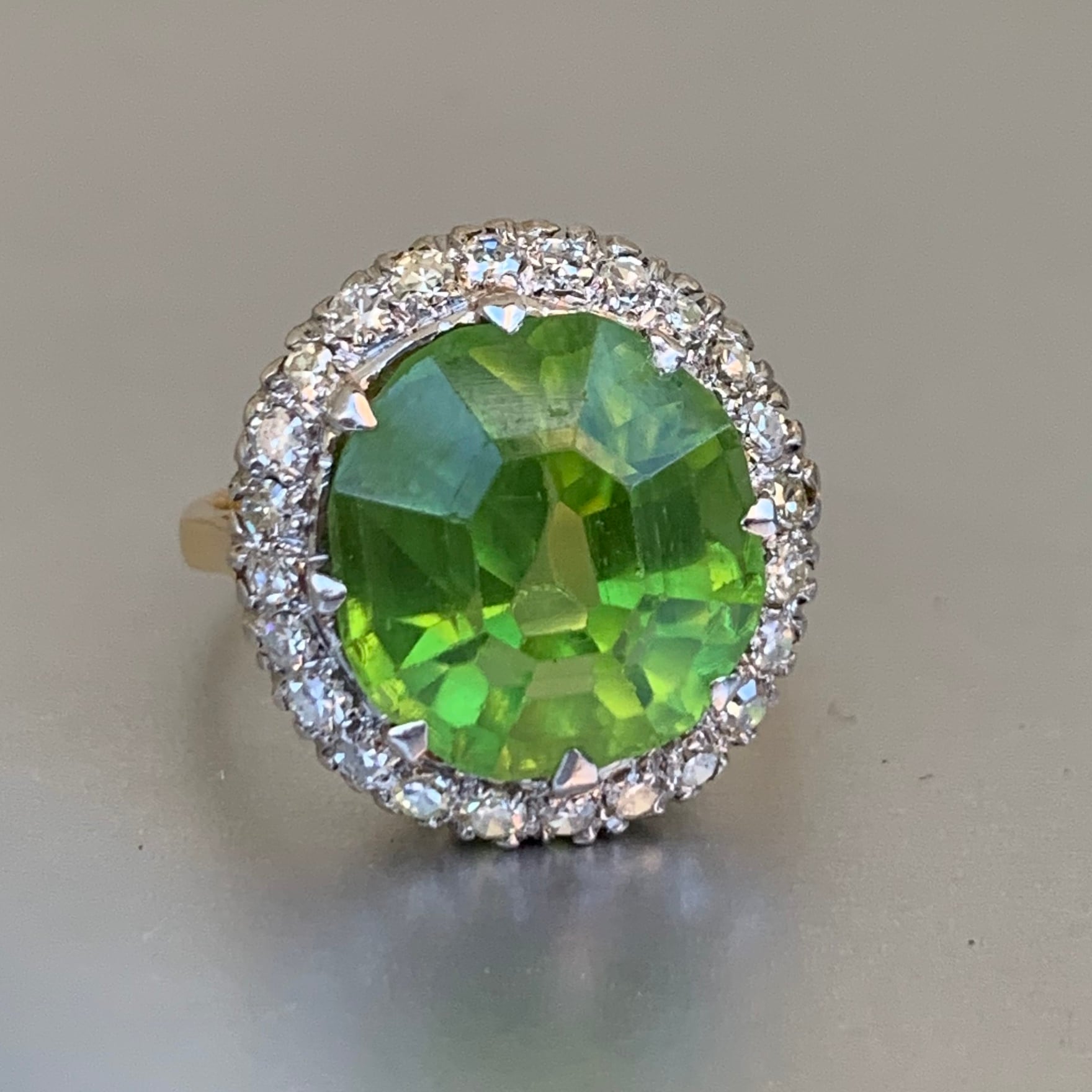本当に美しい大粒の華やかでエレガントなペリドットのアンティークリングです。
