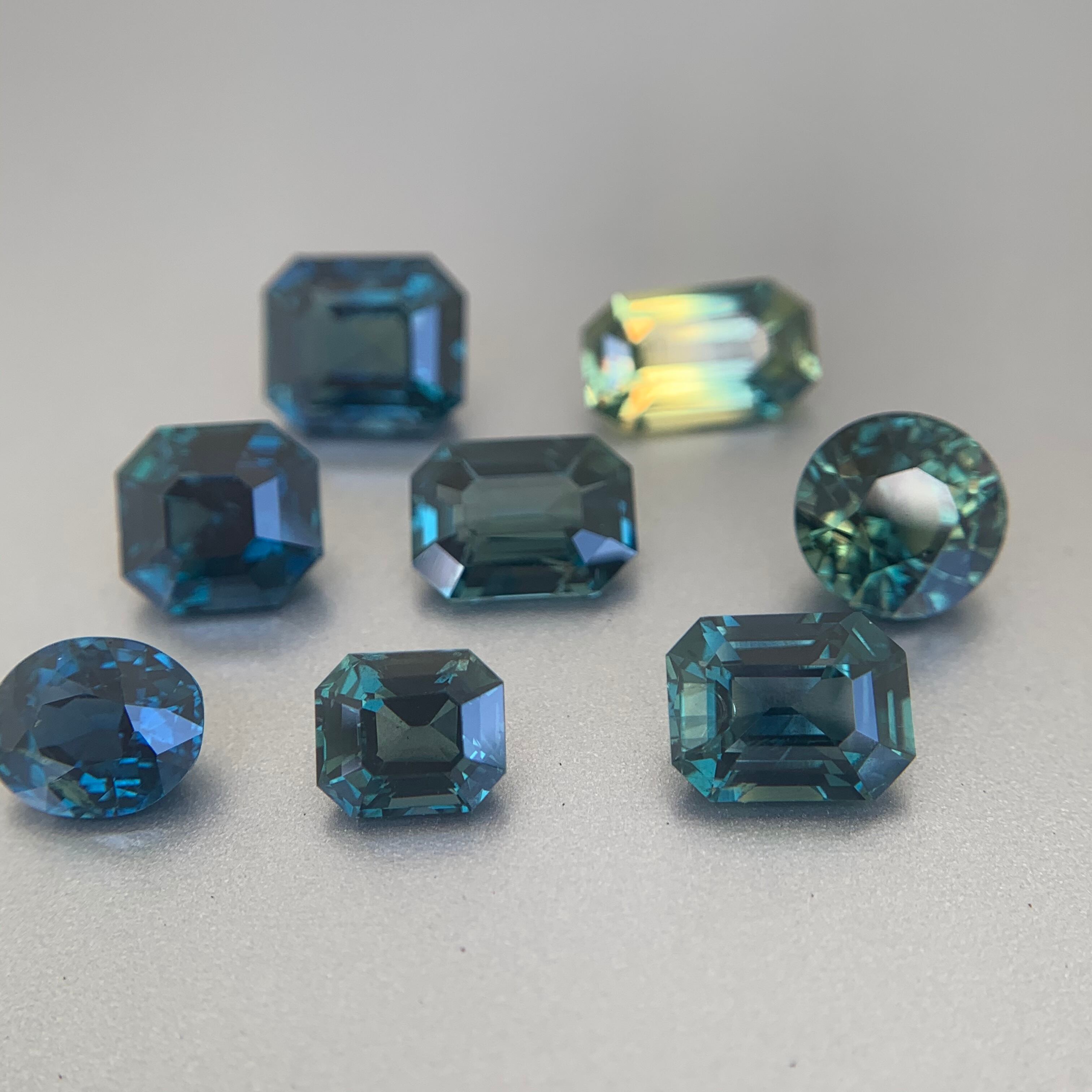 非加熱のこちらの産地のサファイアはまだ産出がここ数年で始まったばかりですがあまり多くはないと聞いています。新産地でも加熱のものが多いなか、こちらは非加熱でブルーグリーンが魅力的でトルマリンの様な華やかさは無いもののユニセックスのキリッとしまったデザインが似合いそうです。