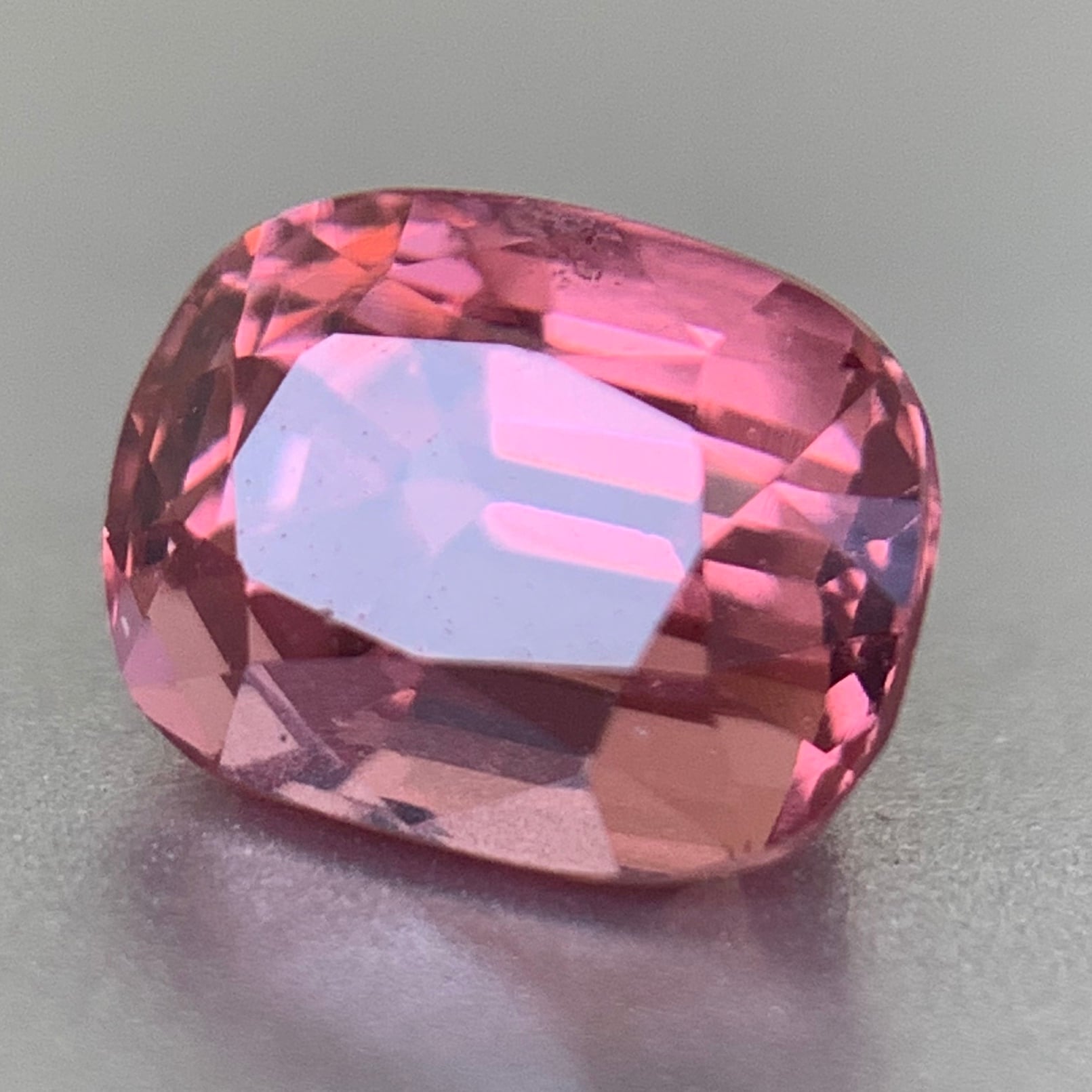 赤とピンクとオレンジの色がスピネルのカットの織りなすモザイクから見え日本人の肌にもしっくりと溶け込むように似合う色だと思います。