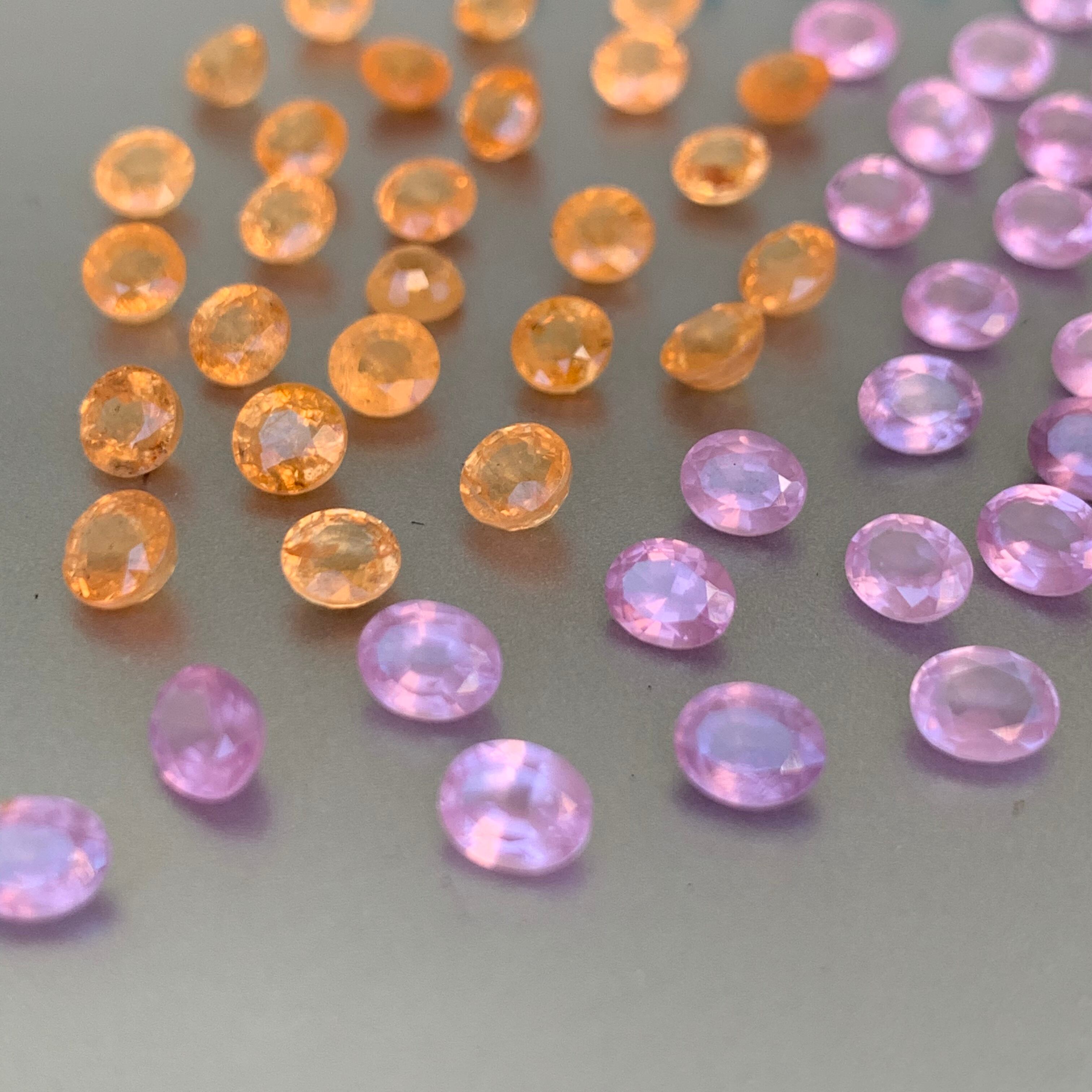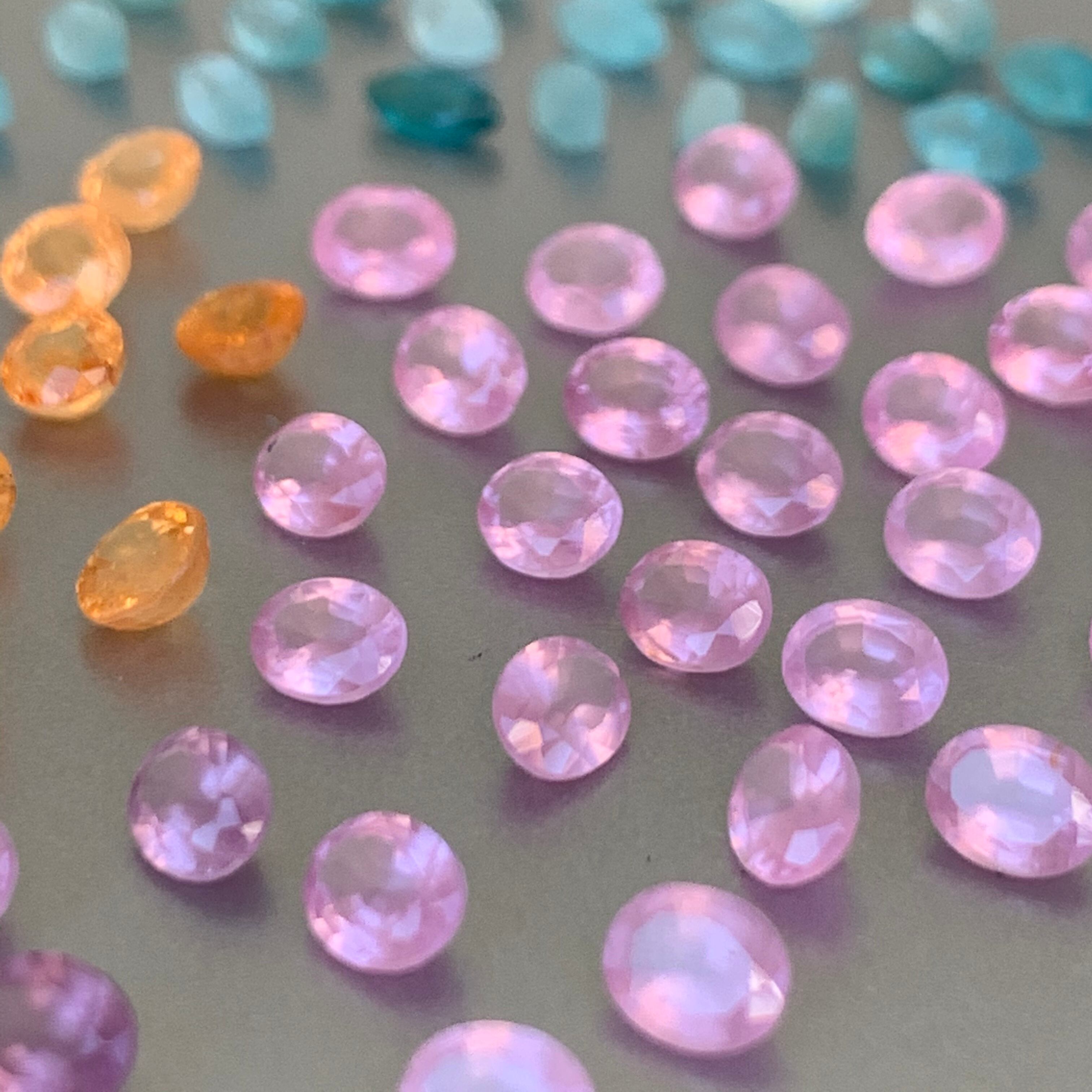 うわぁ可愛い!宝石業界に長くいる私やお手伝いのスタッフも夢中のシルキーカラーです。宝石はキラキラと光って透明感があるような先入観がありますが、シルキーは天然の宝石ならではのインクルージョン、肉眼ではほとんど見えない小さな針状のものが全体に比較的均一に入って入っていることでシルキーな色が宝石に出ています。最初にこのピンクのスピネルを入手して美しいピンクのコスモスの様な色、これを透明感のある宝石と一緒に使えば今までに見たことのないジュエリーが作れると思い何度かピアスを作っていますがこのコスモスの様な八重桜の様な柔らかいピンクが日本人の肌の色にあいたちまち売り切れ、今度は全く見たことのないオレンジ色の蛍光ペンの色の様なシルキーなガーネットを見つけて、販売したところ多くの反響をいただきました。どちらもなかなか普通の宝石店では手にすることのできない石です。