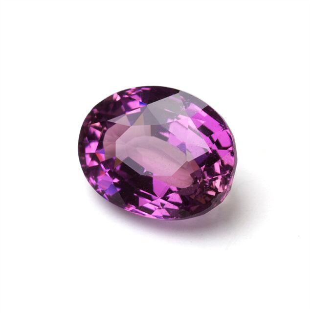 パープルサファイアは時折見かけますが、やや黒みをおびた渋い色合いのお石がほとんどで、この石のように冴えた色味の石は中々ありません。