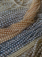 その中でも偶然出来たこの様な厚巻の美しいアコヤの珍しいピーチゴールドの真珠は大変稀少なお品で、時々マルチカラーに混ぜるために私も購入しますが、連に組まれたものはほとんど見ることが出来ません。正直誰にでも似合う色ではありませんが、とても珍しいお色ですので購入を逃すとほとんどまた出会うことは無いと思います。