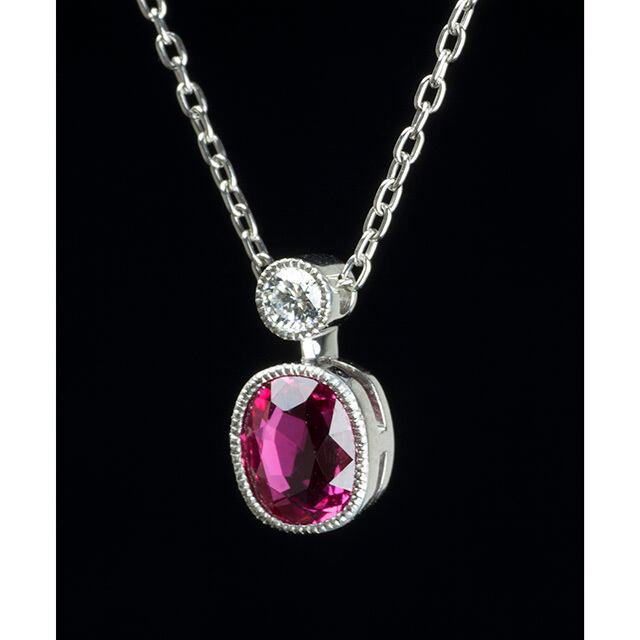 レッドのルビーをミル打ちで縁取ってペンダントに