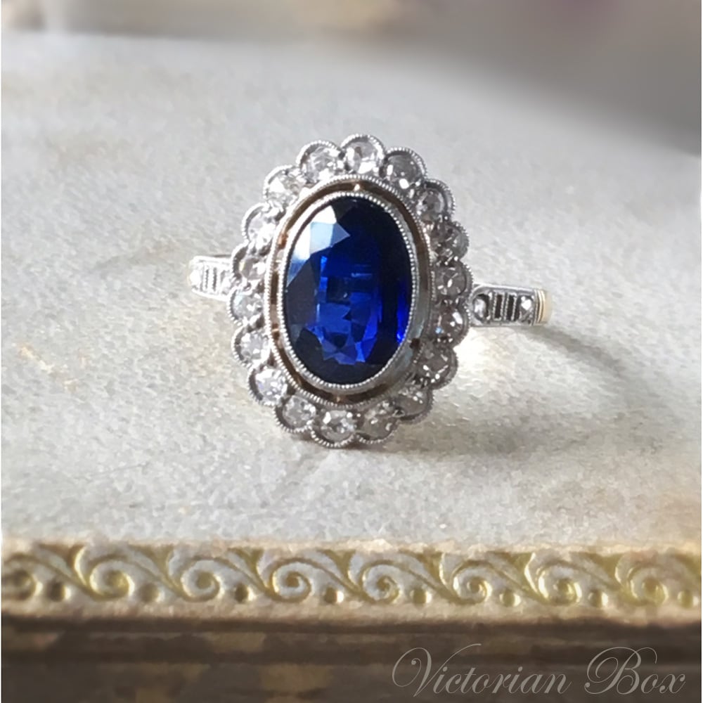 Edwardian Sapphire Diamond Cluster Ring