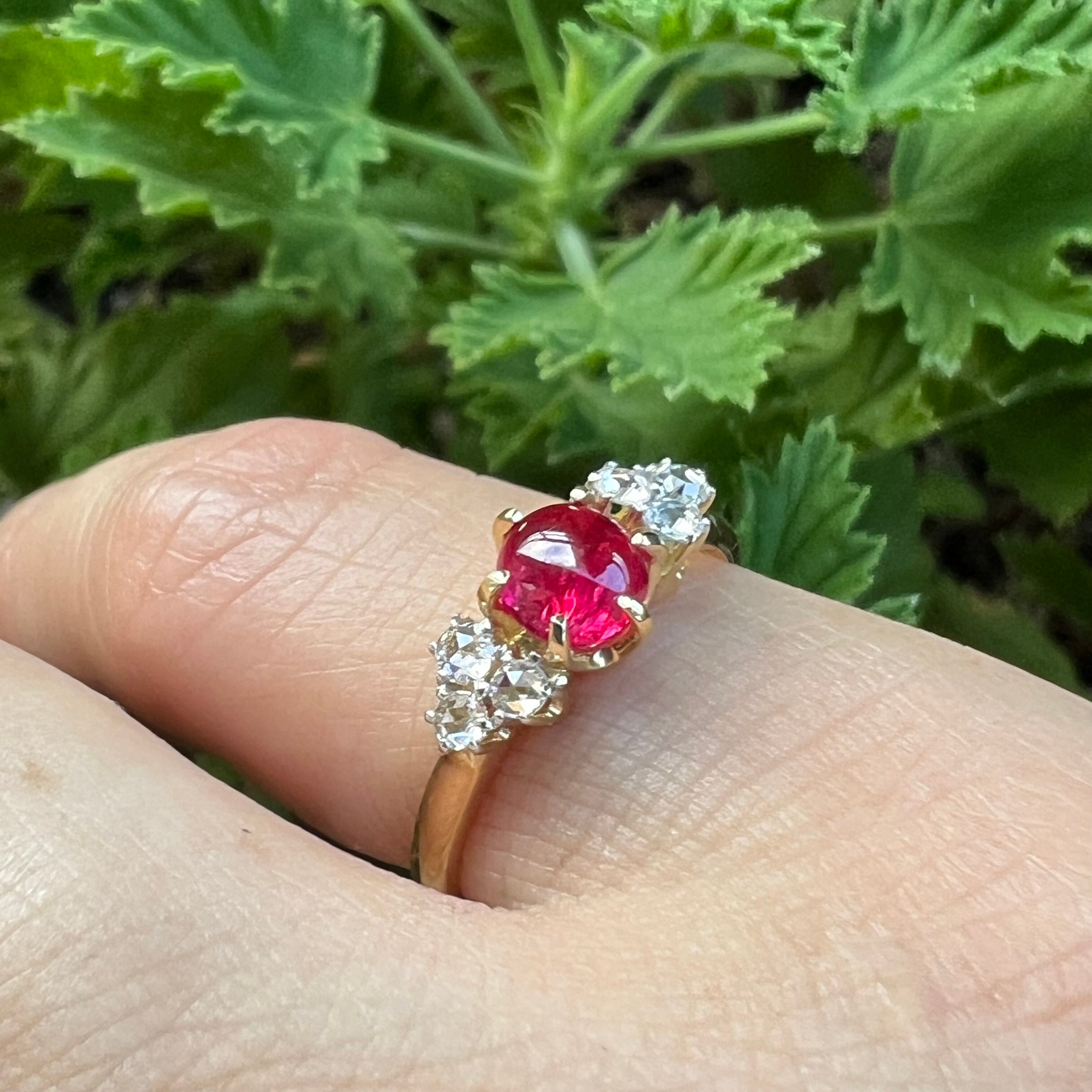 Red Spinel Rosecut Diamond Ring