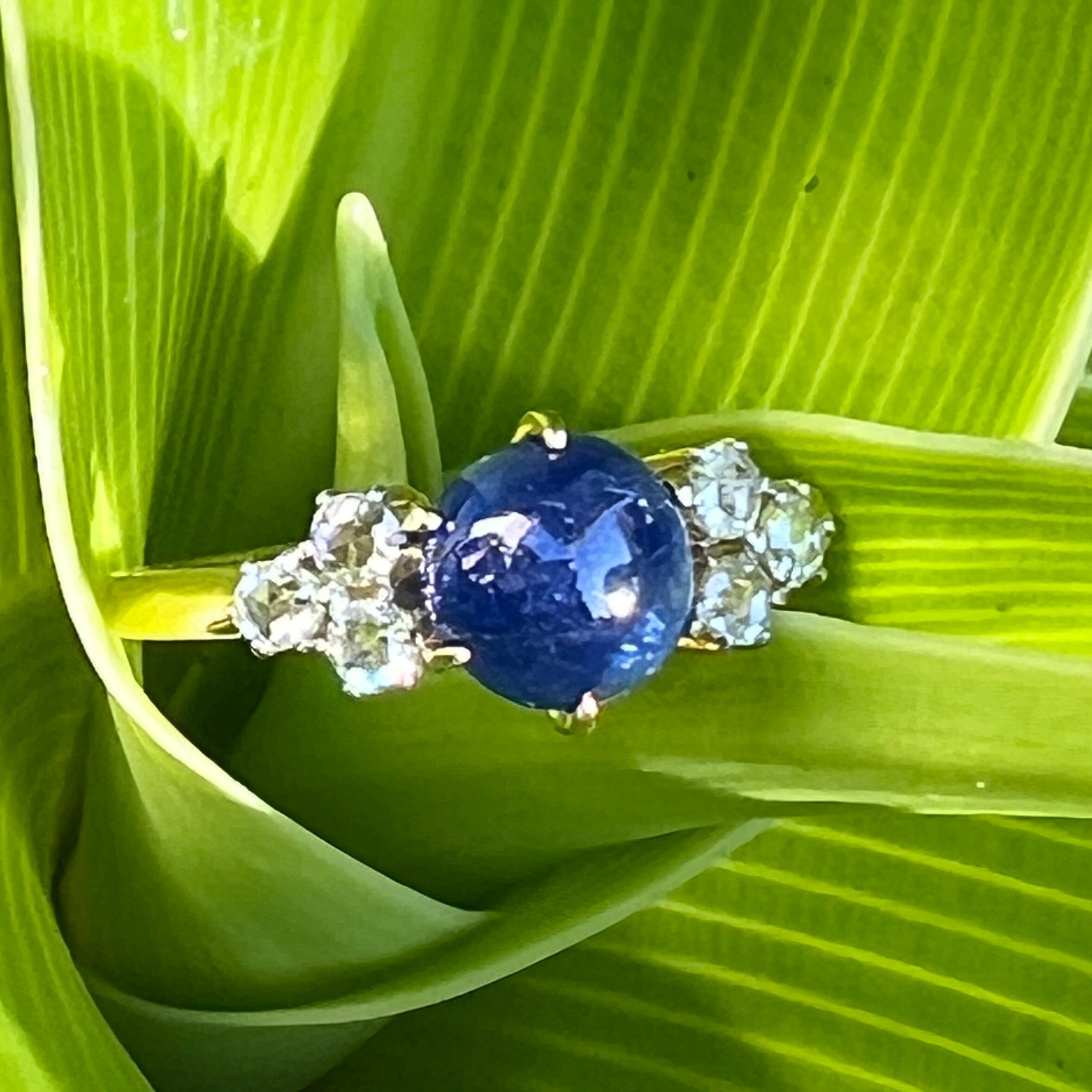 特別な青を感じるビルマ産のカボションカットのサファイアを使ったすっきりと美しいブルーのリングが出来ました。