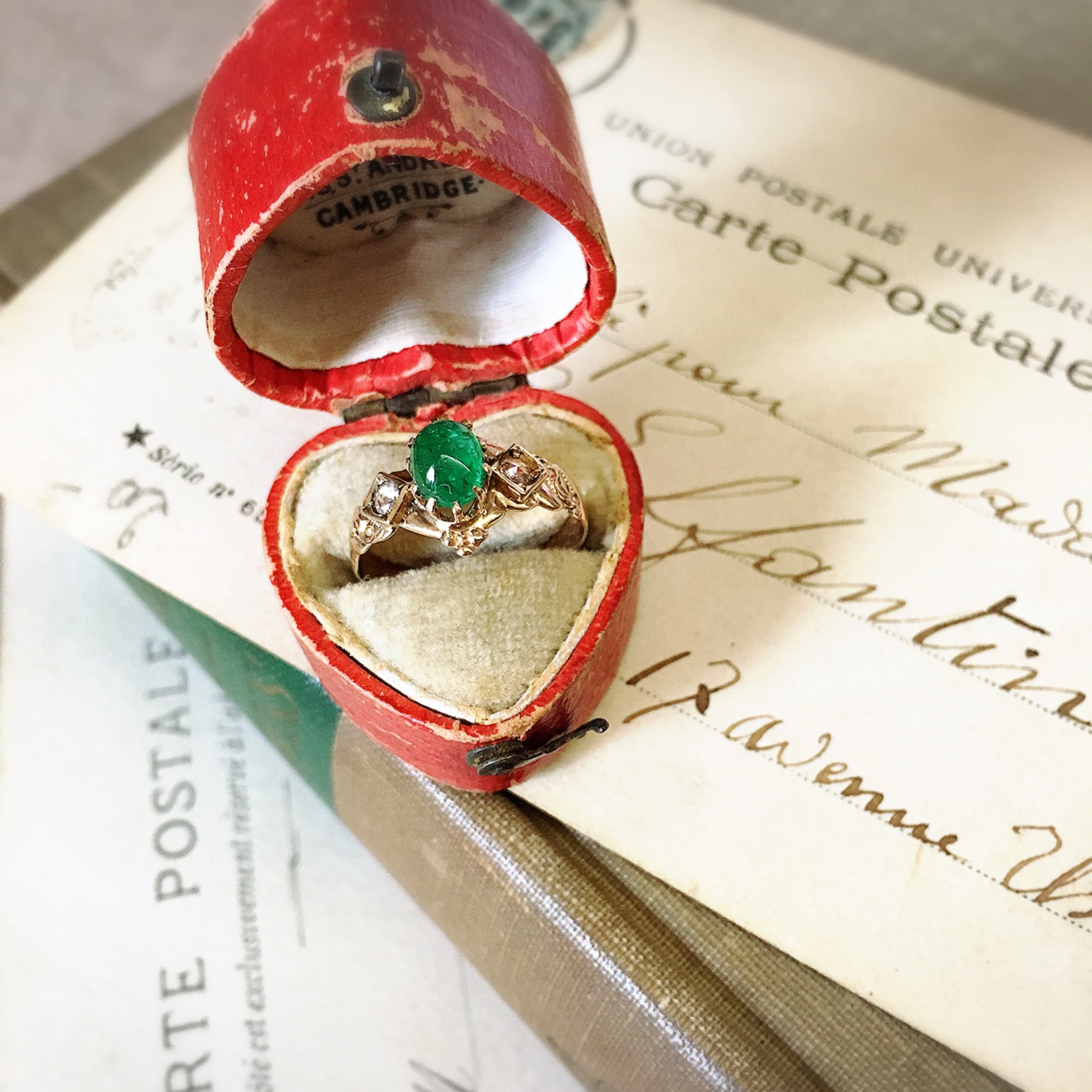 カボションカットされたエメラルドは丸みを帯びているせいか温もりを感じ、穏やかな気持ちにさせてくれる本当に美しいヴィクトリア王朝時代のリングです。