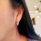着用画像の様に普通にピアスとしてベビーパールとスターダイヤモンドが耳から下がる様にと、一度ワイヤー状のポストを耳に入れてから、本体を上に持ち上げて耳に添わすように持って行き身につける事も可能です。作者自身本当にお気に入りの美しいピアスです。