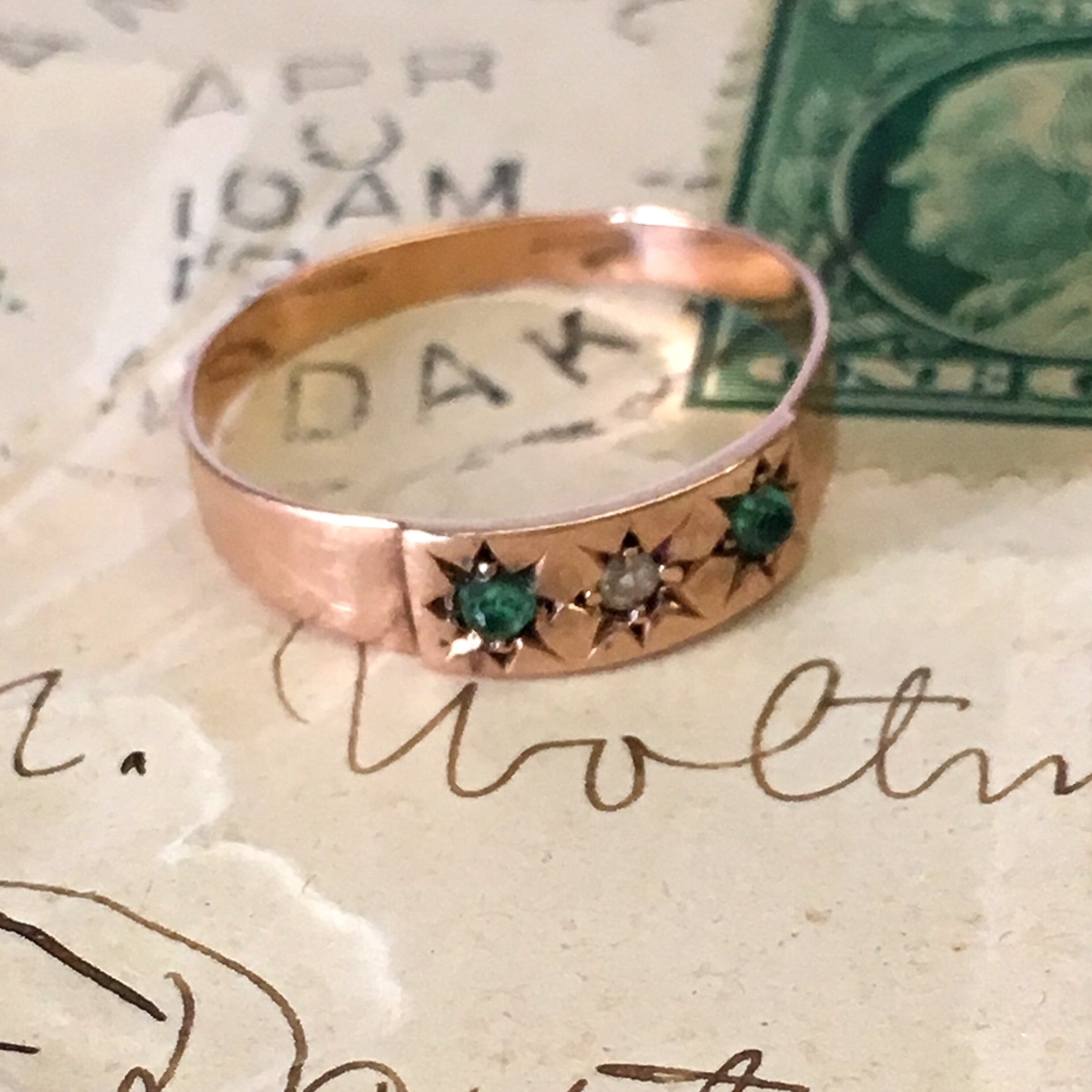 小さい小さいエメラルドとダイヤモンドがなんともいえない可愛さを放っているこちらのピンキーリングはデイリーリングとしてはもちろん、他のジュエリーとの組み合わせ次第ではワンランク上のお洒落な手元を演出してくれるオススメアイテムとして非常に重宝します。