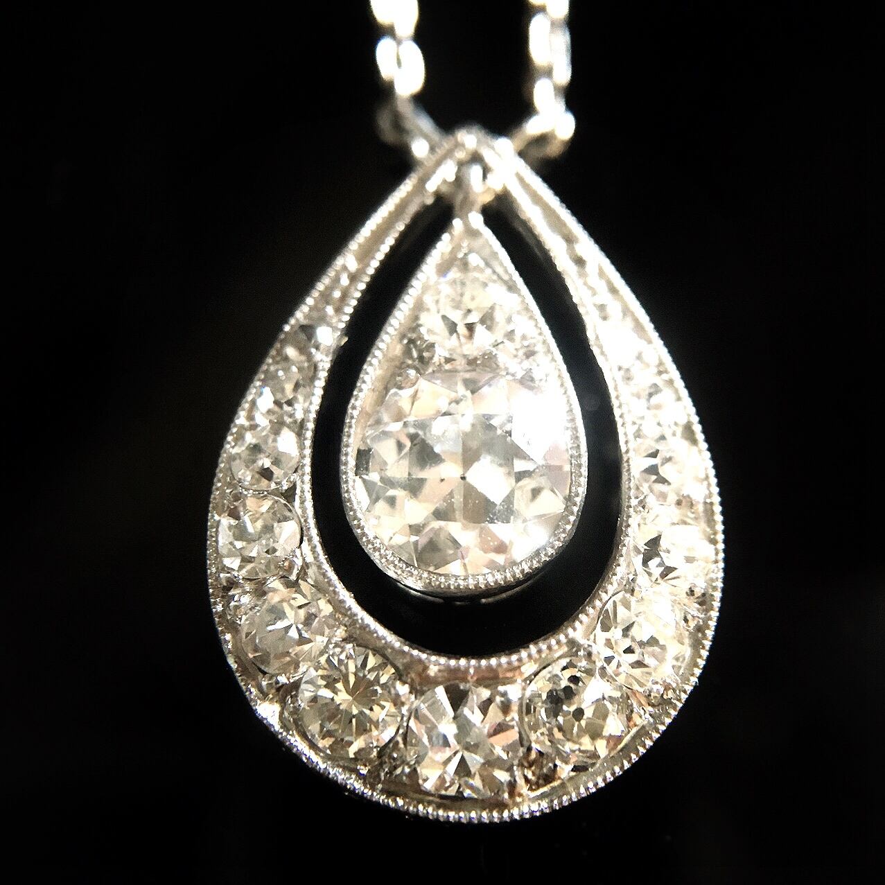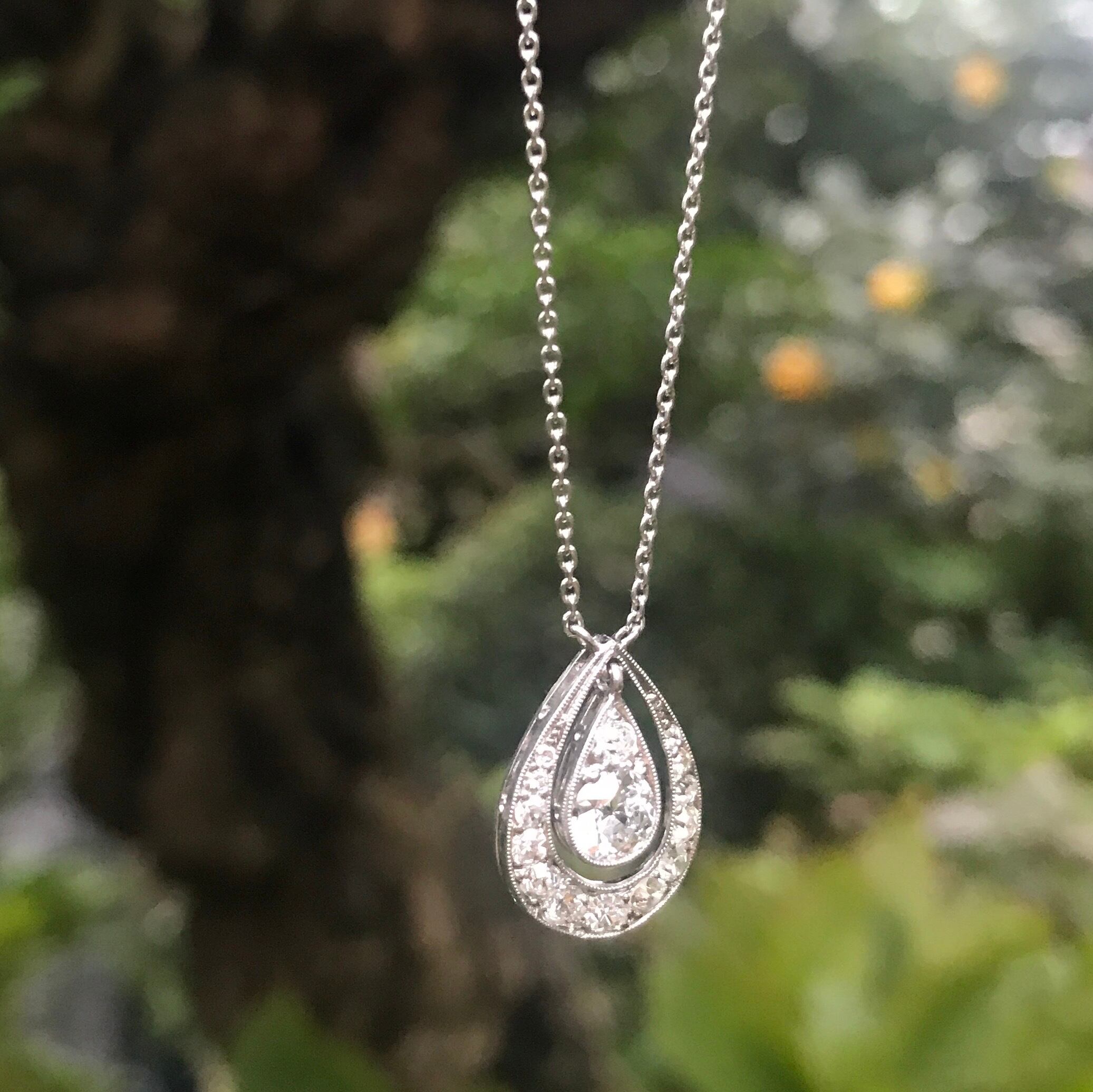 Antique Platinum Diamond Drop Pendant